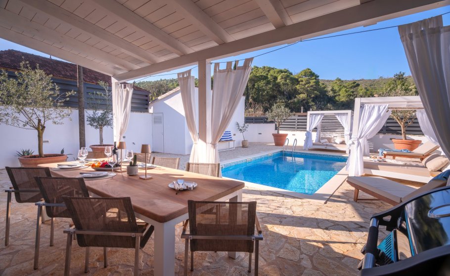 Villa Syrinx ist ein renoviertes Steinhaus aus dem 19. Jahrhundert; Es hat den alten Charme bewahrt, verfügt aber über alle modernen Einrichtungen. Da es sich im Herzen von Hvar befindet, ist es in der Tat ein perfektes Ferienobjekt, wenn Sie gerne mit dem Auto oder Fahrrad herumfahren, um alle verborgenen Schätze der insel zu entdecken.