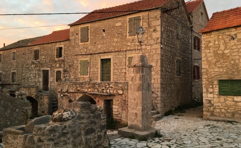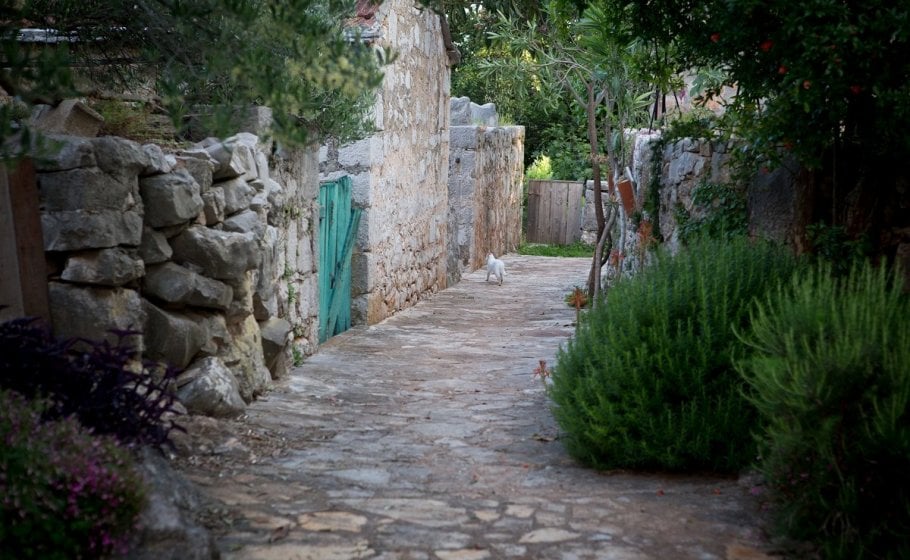 The cottage is in Mala (Little) Rudina, a protected "ethno-eco" village of a few dozen old stone houses at the end of a meandering track on top of a hill above Stari Grad. Mala Rudina is so small that you won’t find it in Google Maps; nevertheless, you can follow Google Street View past Vela (Big) Rudina and around to the right, all the way to our village square, to see what our little village looks like. In our opinion, it is pitch perfect, surrounded by ancient shuttered stone houses, with pride of place given to an old wine press and the base stones of two old grape presses. In the evenings, this charming tableau is bathed in the soft yellow light of the single village lamp, perched atop a narrow stone column. You most likely won’t hear anything at night in Mala Rudina other than the cicadas, your own voices, and perhaps the neighbor’s occasional blues harmonica. The silence, as they say, is deafening, though it will break in the morning as the village and its surroundings awake, and you may even hear a rooster crowing.