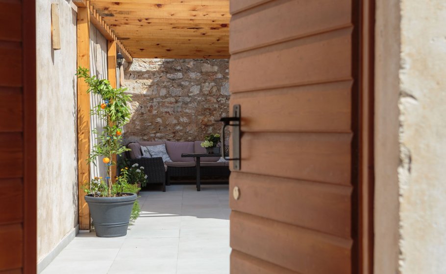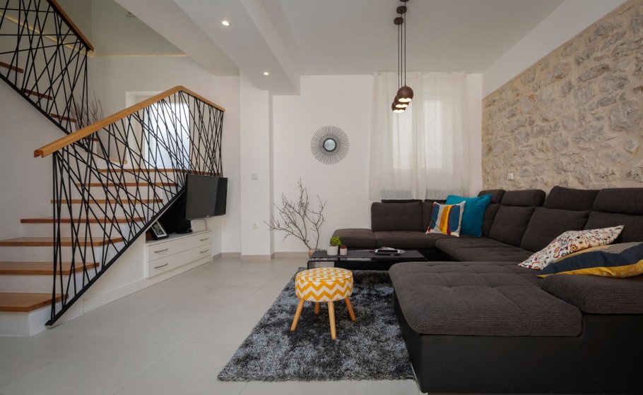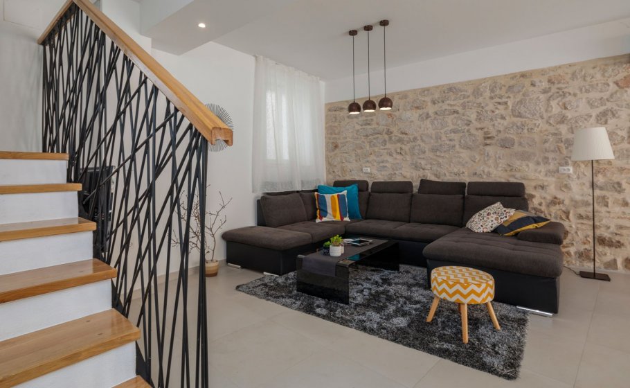 This cozy cottage is situated in the old part of the town of Jelsa surrounded by typical narrow streets, old stone houses, suggesting a typically Mediterranean way of living – from the scents, colors, materials and shapes to the feeling evoked by a visit to the old town. The cottage itself is completely new; it used to be a typical Hvar konoba, but it was demolished and rebuilt in 2017. It wisely combines the modern with the original, wood and stone with modern materials and minimalist lines and colors in the interior and the exterior, with a flashy detail here and there.