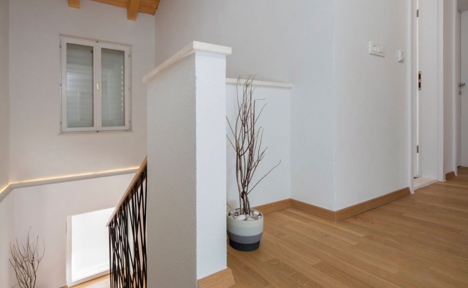 All beds have invaluable Bawaria Wolltex Premium mattresses, something we have to emphasize since the purpose of a vacation is to rest – and these mattresses will help you sleep like a baby. The rooms feel quite spacious and large since there is no ceiling – you can see wooden roof beams that give the space an additional whiff of warmth and charm. In case you decide to visit Jelsa in the winter – the upper-floor bathroom and the entire ground floor (kitchen, living room, bathroom) have floor heating. Each bedroom, living room, and kitchen have AC. The yard is equipped with everything you need for a pleasant afternoon siesta or an evening socializing.
