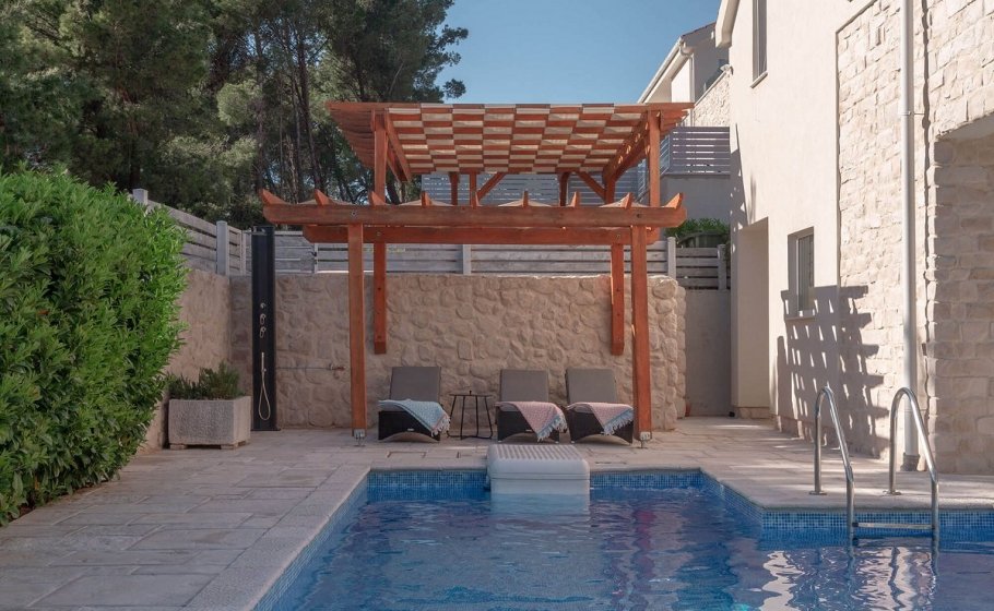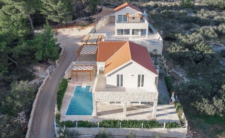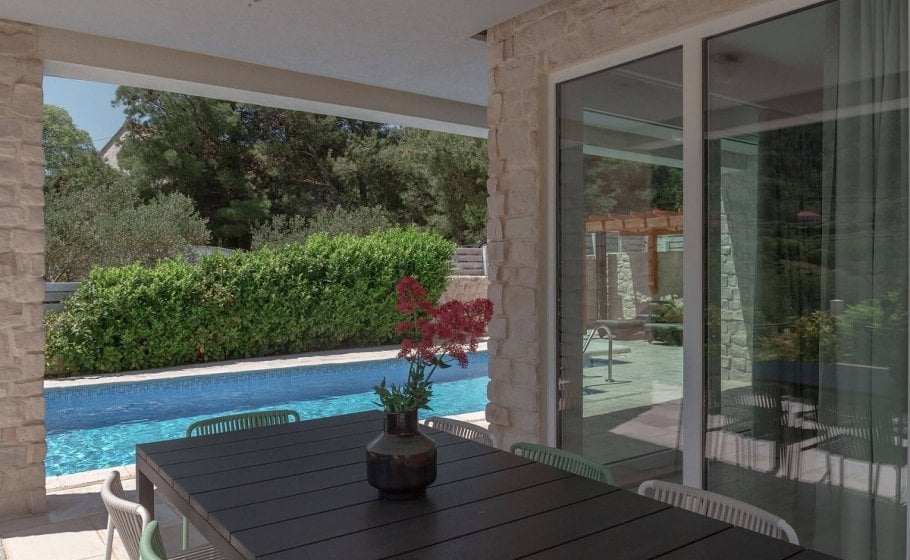 For example, Adrasteia has a pool the size of 35m2, and Echo has a pool the size of 43 m2. Villa Adrasteia has a balcony the size of 40 m2, and it has two bedrooms overlooking the village of Pitve and the sea. Villa Echo has a balcony the size of 50 m2 and one bedroom overlooking the village of Pitve and the sea. So much about differences...