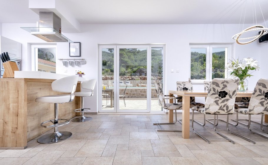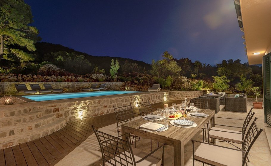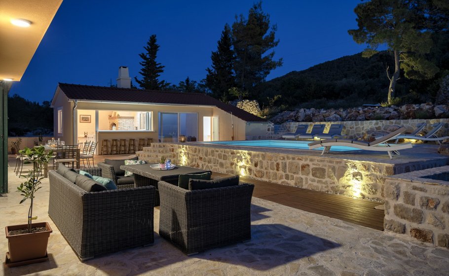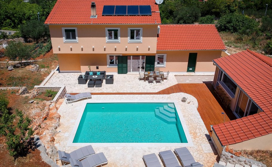 Aether is an attractive family house with a pool, located at an ideal location for all guests who might want to listen to music during afternoon siestas or in the evenings without having neighbors come over to complain. The location is also great because you are within short walking distance to the sea, to the beach, to the town center and all the town facilities without actually being in the town center! For those of you who love to visit the town of Hvar often – you’ll need a 15-minute drive to get there. And you might not even want to go there once you fall in love with Stari Grad.