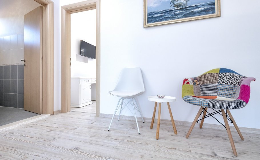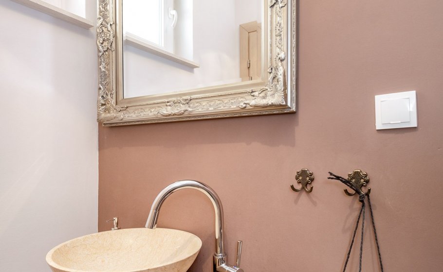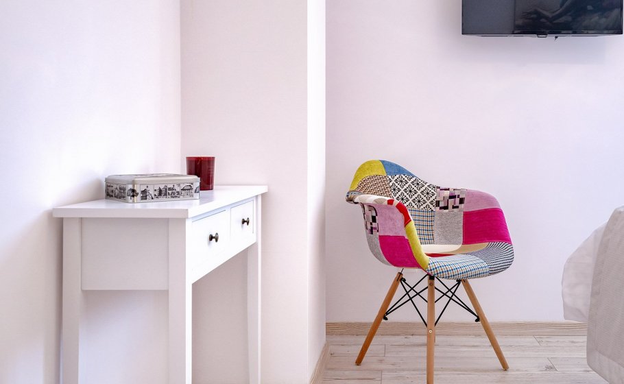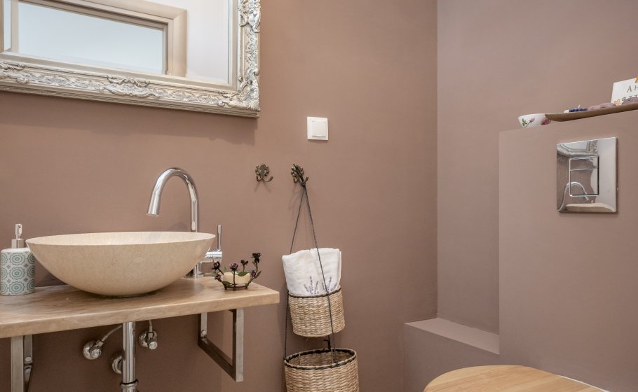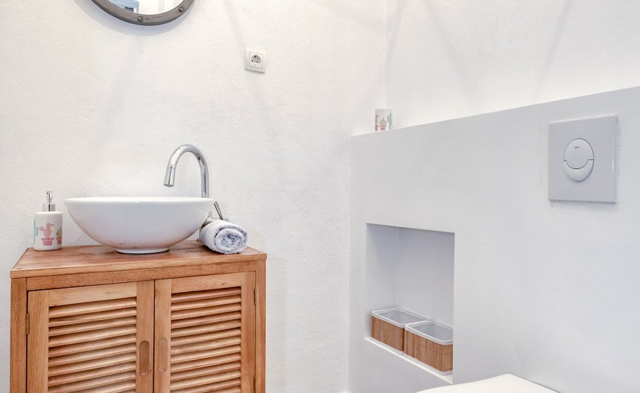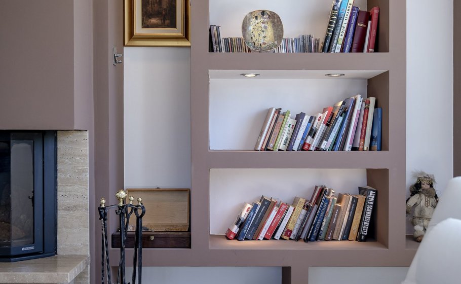 What we particularly like about the first floor is the practical, spacious walk-in closet, something you don’t usually see in villas for rent, but we love it! Here we end our tour of Aether, a spacious house in which every detail perfectly complements the other; from wood to stone, from lighting fixtures, pictures, and pillows to cabinets, wallpapers, and playful chairs.