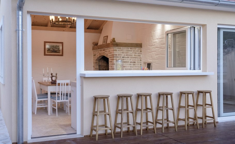You’ll reach the house from the town road, leave your car at the parking lot and climb several easy steps to get to the entrance. Here you’ll already see the gentle touch of the owner – it is visible in the garden, the lawn, among the olive trees, vegetables, and flowers. Yes, if you’re lucky enough to find seasonal vegetables, feel free to make a lovely salad for lunch.