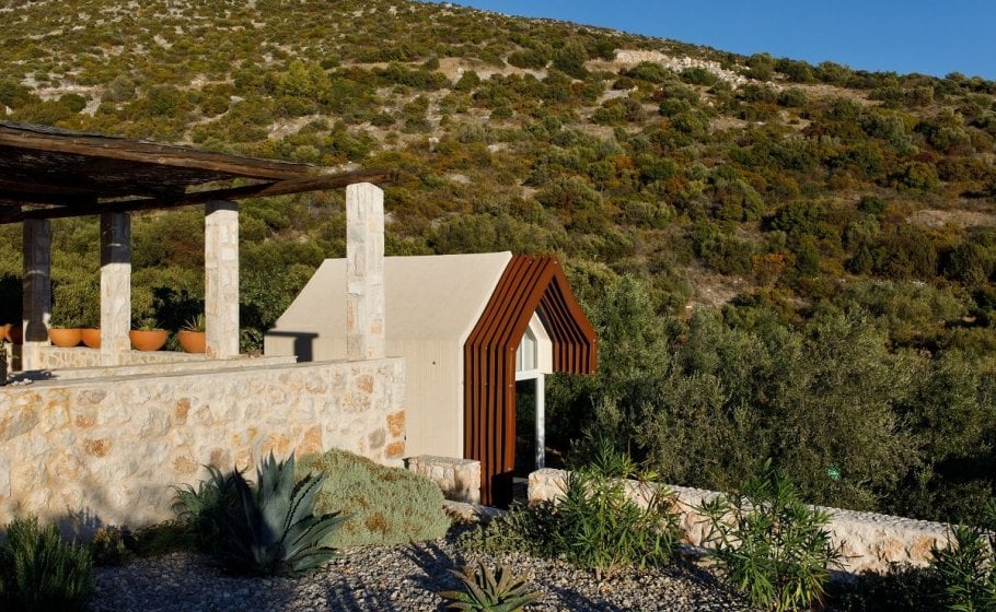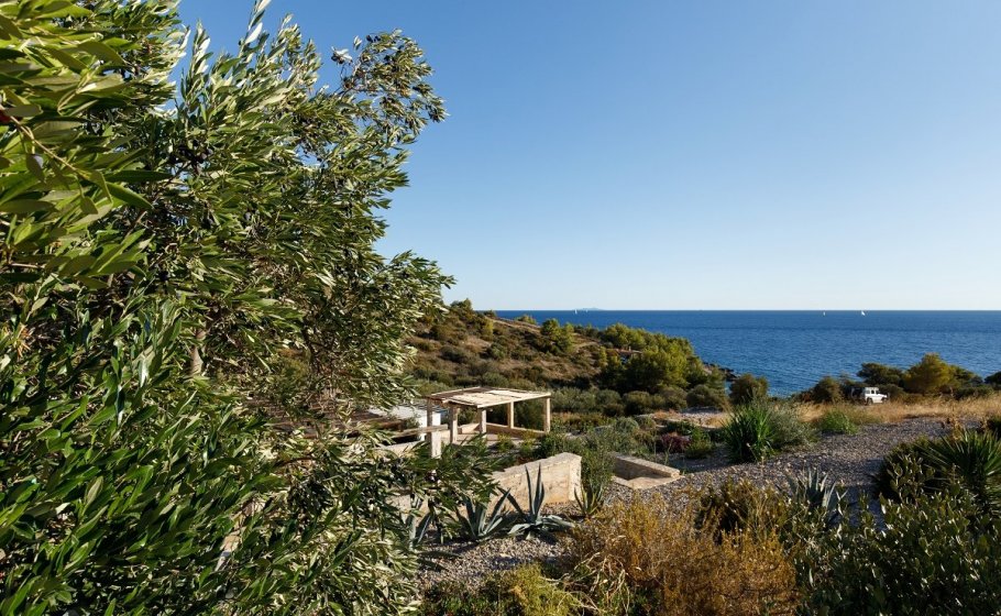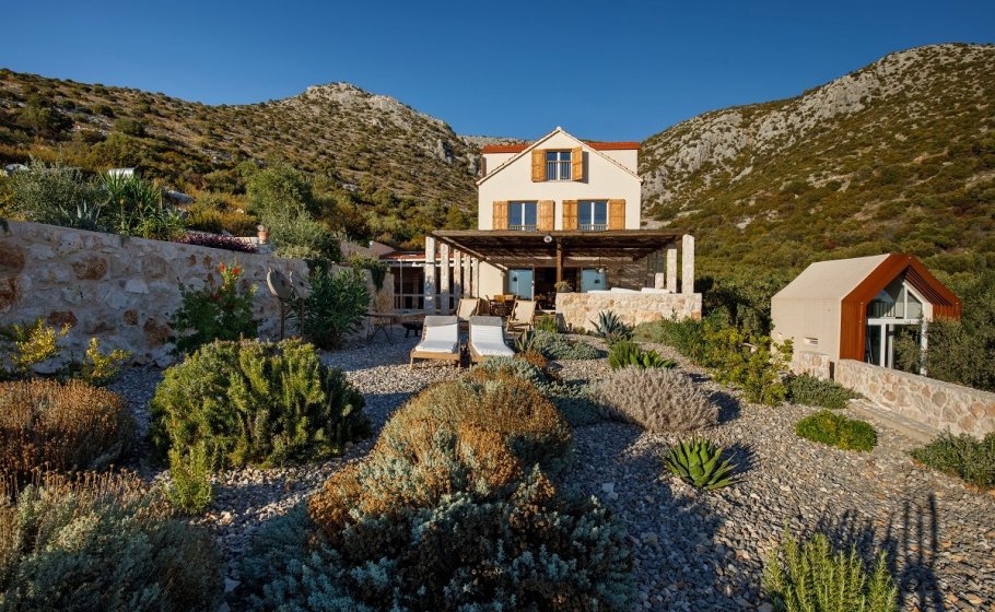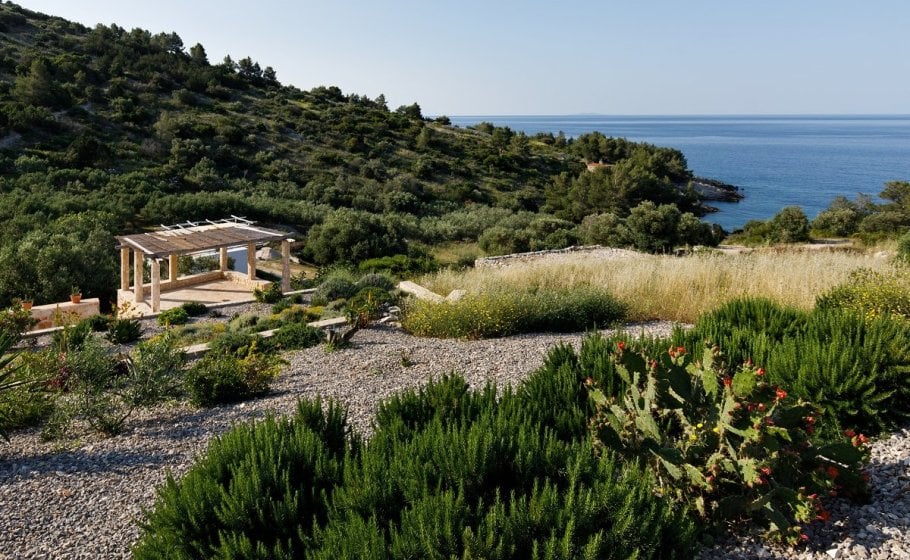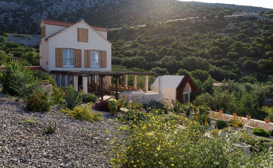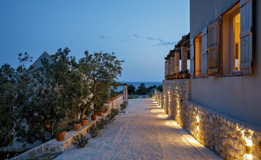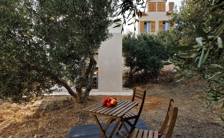 Around the main house you’ll find the olive grove covering 2000 m2. Most of it stretches along the eastern part of the road that leads to the house. It also has a garden pavilion equipped as a self-standing little house. Large glass walls are striking, and allow the guests to enjoy the view of the old olive grove terraces. In the shade of the trees you’ll see a table with two chairs, probably the best morning coffee spot in the entire cove.