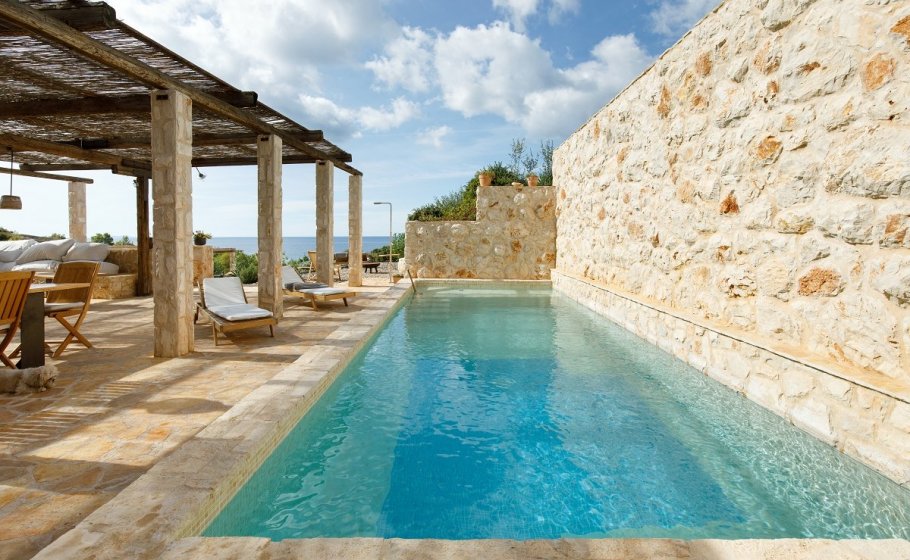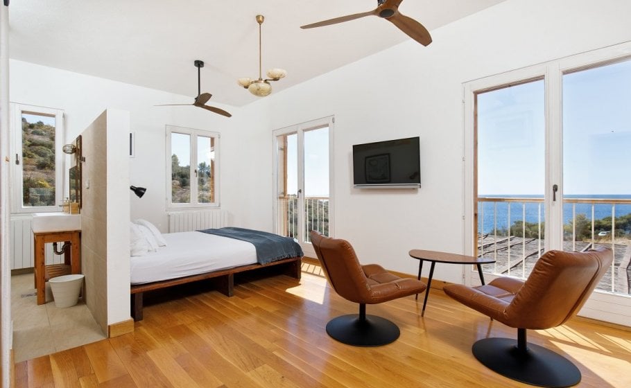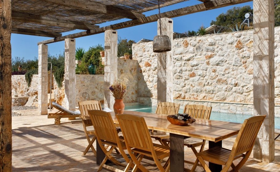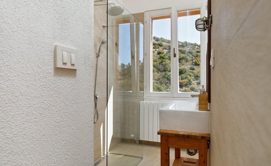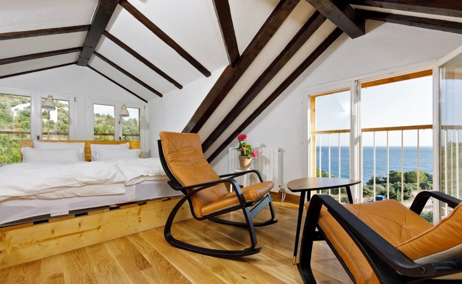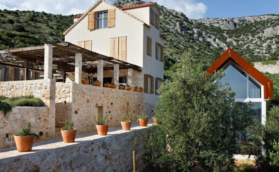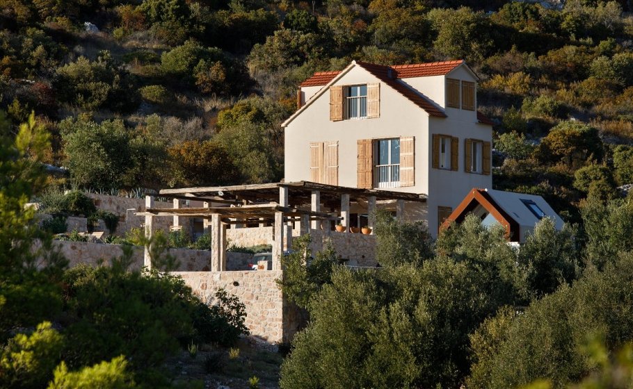Around the main house you’ll find the olive grove covering 2000 m2. Most of it stretches along the eastern part of the road that leads to the house. It also has a garden pavilion equipped as a self-standing little house. Large glass walls are striking, and allow the guests to enjoy the view of the old olive grove terraces. In the shade of the trees you’ll see a table with two chairs, probably the best morning coffee spot in the entire cove.