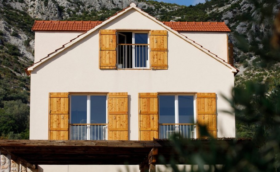 In numbers, main house looks like this – the living room, kitchen, and ground floor toilet cover 35m2, the first-floor room with the bathroom and toilet also covers 35m2, whereas the attic spreads over 25m2 with a bathroom and a toilet. Along with the western facade, there is a patio spreading over 25m2, with a fireplace, a wood-fired oven, a summer kitchenette, and a table with five chairs. The area also has a pool the size of 25m2.