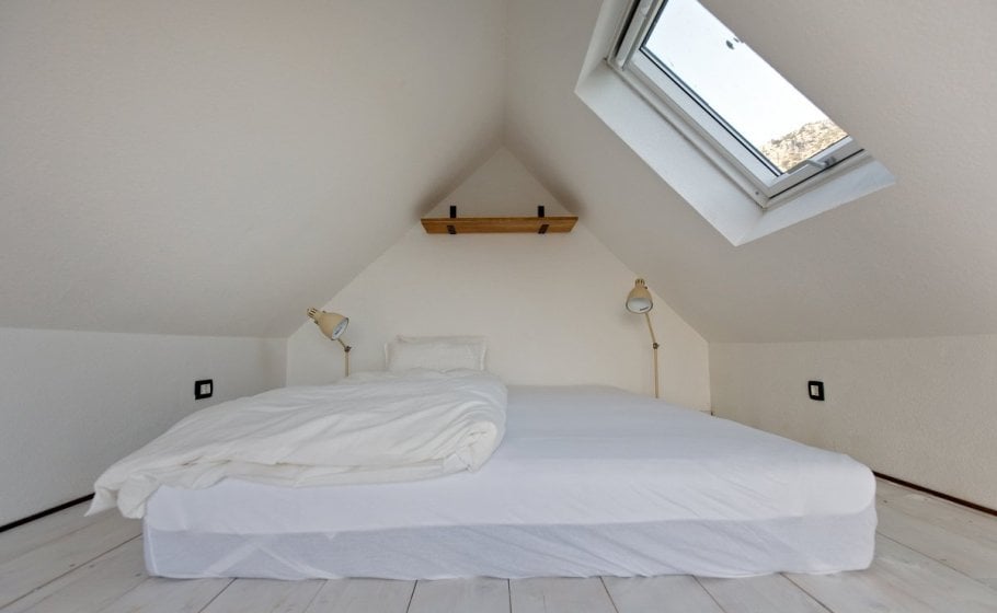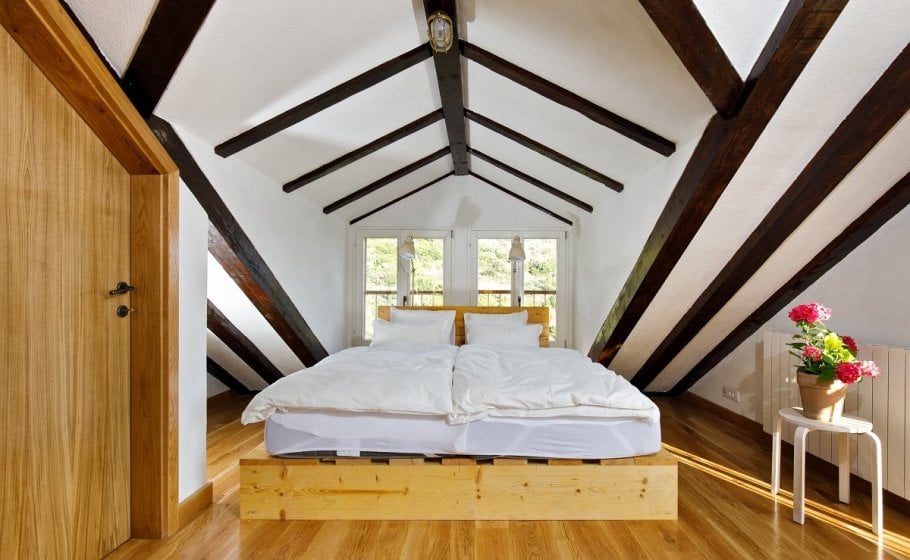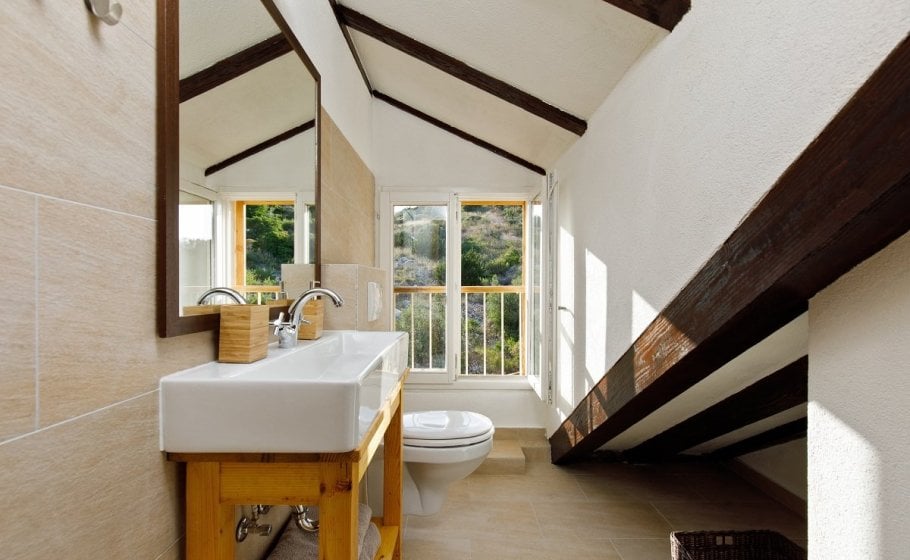 The staircase continues to the attic, where you’ll find a room the size of 25m2 with a matrimonial bed (180x200 cm), two chairs and table, an LCD TV with satellite programs, and a bathroom.