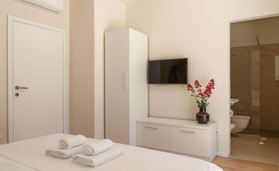 The first floor consists of a sleeping area; there are four bedrooms with its en-suite bathrooms (toilet + shower). Each room has a double bed, built-in wardrobe, air-conditioning, and TV.
