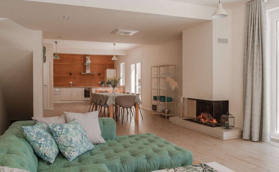 Each villa consists of four bedrooms with four en-suite bathrooms. Each villa also has an additional bathroom in the underground, i.e. a spa zone with a shower and a Jacuzzi. Furthermore, each house also has an additional toilet. Villa Adrasteia is located in front of Villa Echo. Each villa consists of the underground, ground floor, and first floor.
