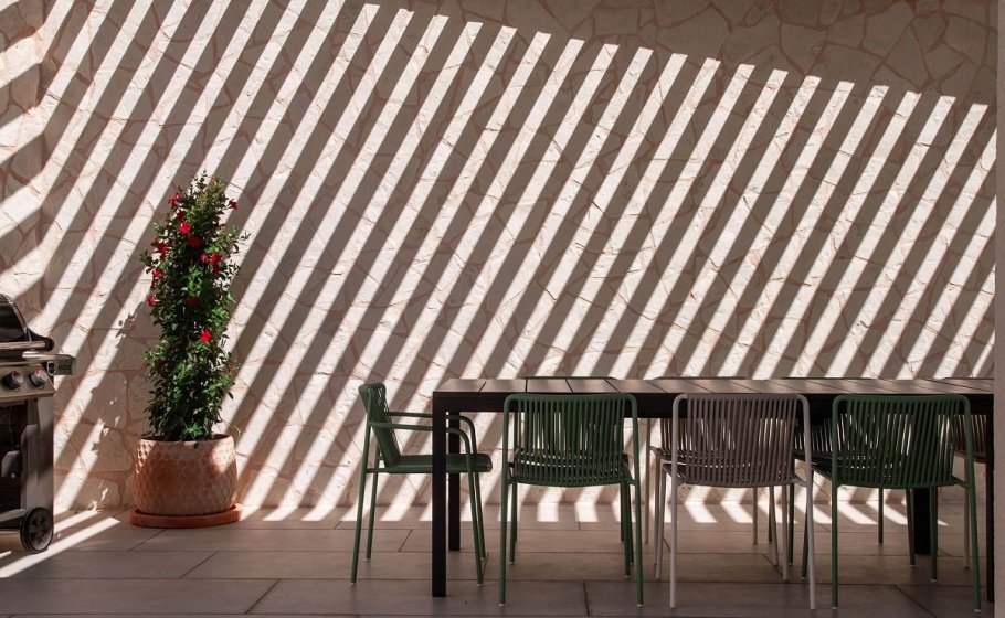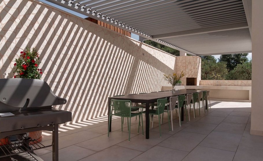 The villas are surrounded by a hedge of laurel and cherry, in the company of various Mediterranean plants, lavender, figs, tangerines, lemons, pomegranate, and olive trees.