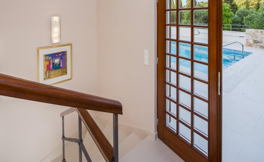 Separating the ground floor from the first floor is a stairway that also exits to the spacious terrace with Mediterranean garden and swimming pool (6m x 4m).