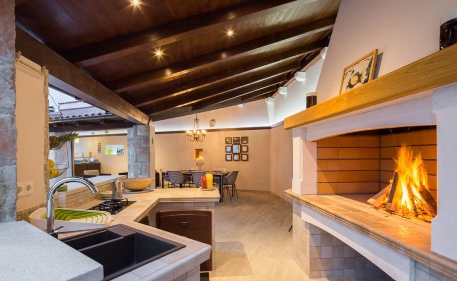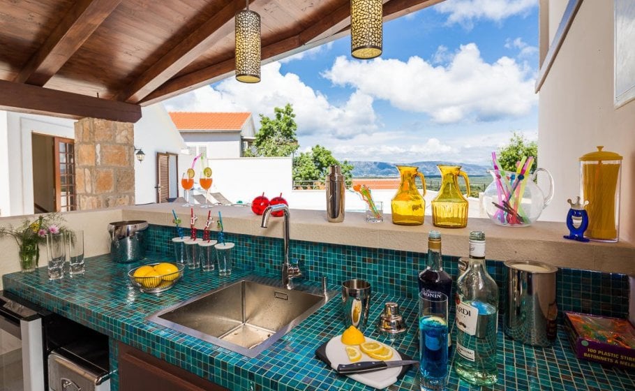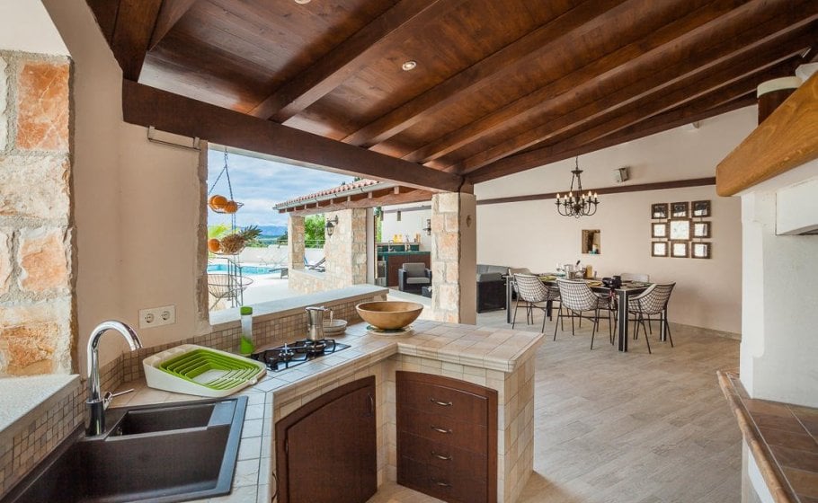 In the same area, there is a completely functional outdoor kitchen with a wood burning BBQ, gas cooker and sink.