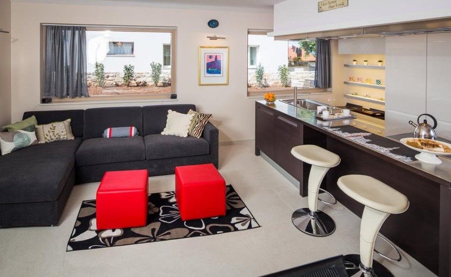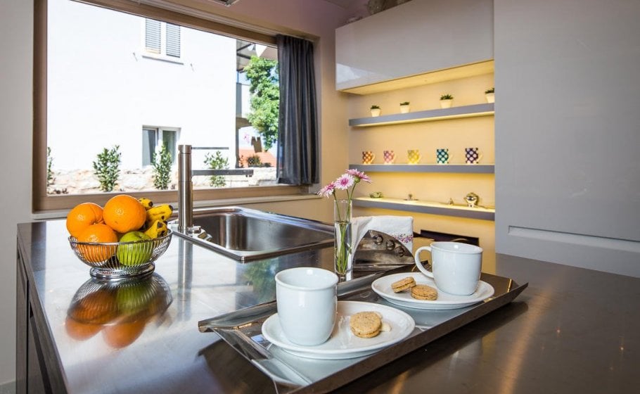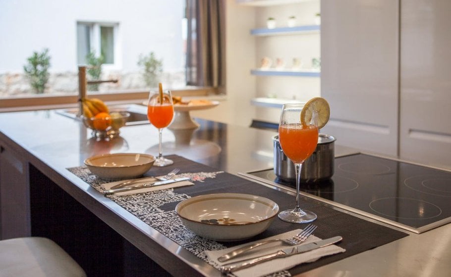 On the ground floor there is a modern, fully equipped kitchen with living room with attached pantry. In the living room there is additional sofa bed for two persons, if needed. There is also an additional bathroom with shower on the ground floor, as well as washer/dryer area.