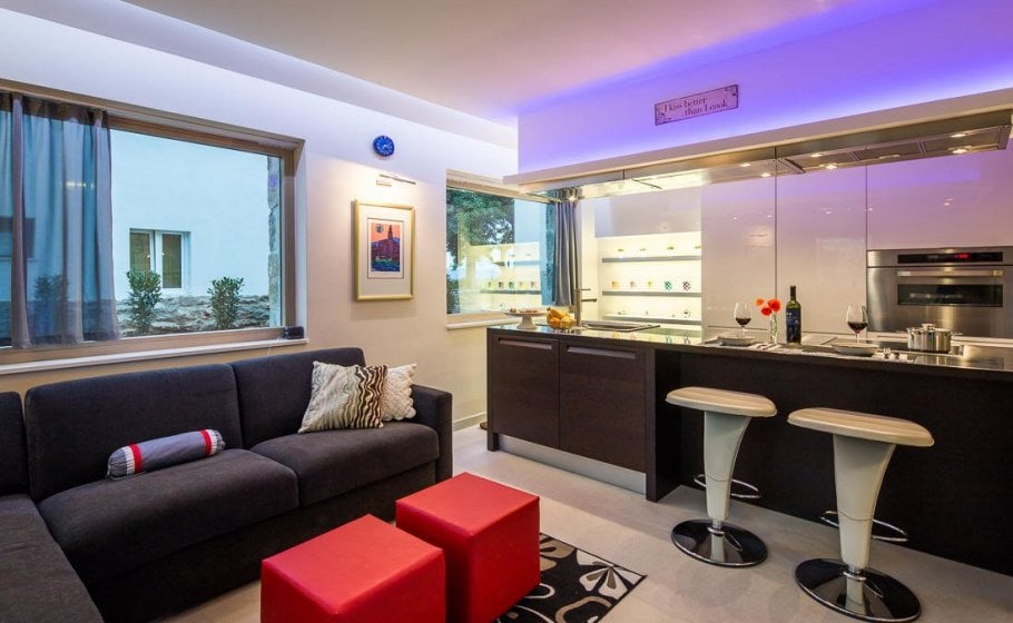 Particularity of Eirene is its beautiful outdoor living area where you can find all the amenities that can be found in the interior of the house.