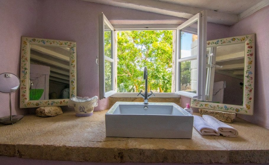The property is soaked in the scents, shapes and colors of the Mediterranean. It is surrounded by cypress trees, lavender, sage, rosemary, fig trees and olive groves.