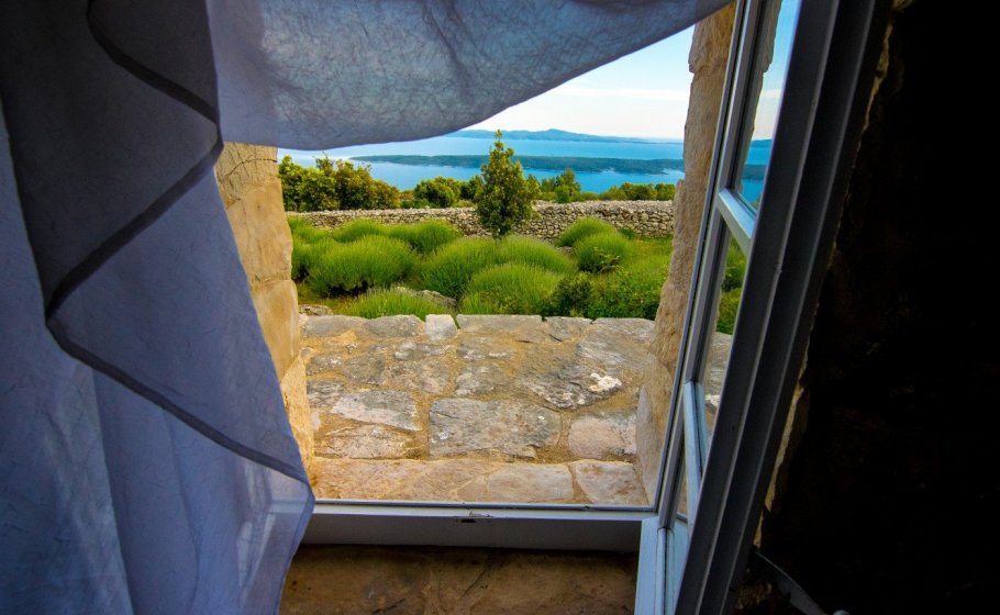 Agricultural workers formerly used this property so they can take a break from fieldwork - to hide from the sun of to get warm next to the fireplace in the winter period. Today, this wonderfully authentic Dalmatian estate is a perfect choice for a holiday of your dreams – dreamy, romantic interiors inside the stonewall maze, peaceful fields all around and unforgettable views of green land and deep blue, infinite sea. You will indeed get to see all the possible shades of color green and blue during your stay.