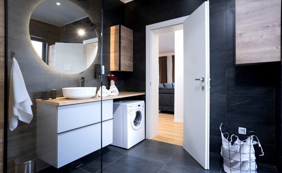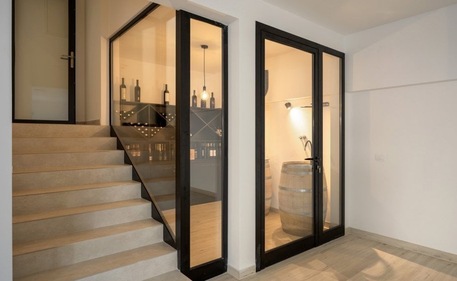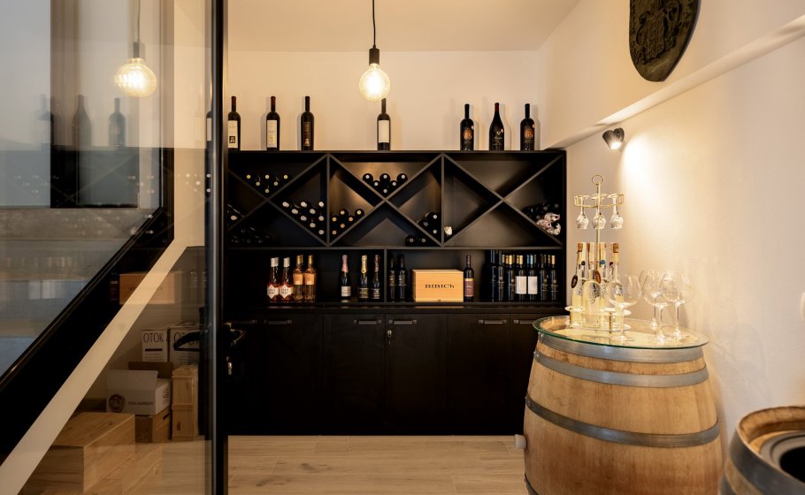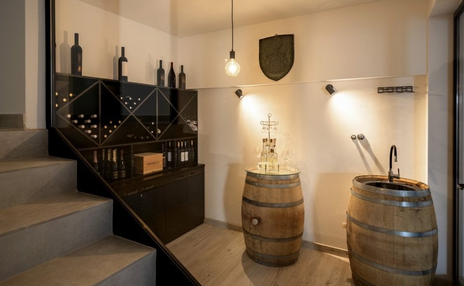 If we return to the ground floor, go out on the terrace, and descend the stairs by the pool to the basement, there is a new kind of joy waiting for us. Wine! There you’ll find a small wine cellar, a lovely room with a selection of the best Hvar wines, and some Croatian... In villa Galateia can be organized a wine tasting of Hvar winemakers, at your request. One of the owners is an oenologist, so he knows what he's talking about. There is also another shower in the basement.