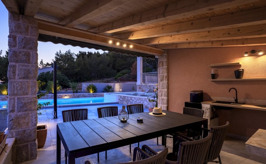 When you’re done swimming, return to the main terrace of the villa, grill a fine piece of fresh fish, sit at the outdoor dining table with the people you have chosen to spend your vacation with (family, friends, it doesn't matter; what does matter is that they make you happy), eat fish, drink the rest of the wine, take deep breaths (because if there were no villa, the air here alone would provide endless pleasure), admire the view, lie down on a comfortable deck chair, chill, enjoy the smell of Mediterranean foliage, and think about what you did to deserve such beauty. If you don’t know, there’s another outdoor shower right next to you. It also has cold water.