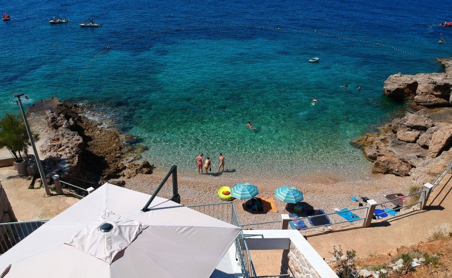 If we are still sober enough to climb a couple of necessary stairs to get back to the terrace, we can finally swim there, and the choice for swimming is vast. If we had too much wine, there is a small pool where anyone can sober up (safely). Those who drink in moderation can jump into the regular pool, while those who take a glass of wine tops or those who don’t drink at all can walk down a few steps to the lower, second exit of the villa and hit the pebble beach for a serious swim in the beautiful, perfectly clean, azure sea.