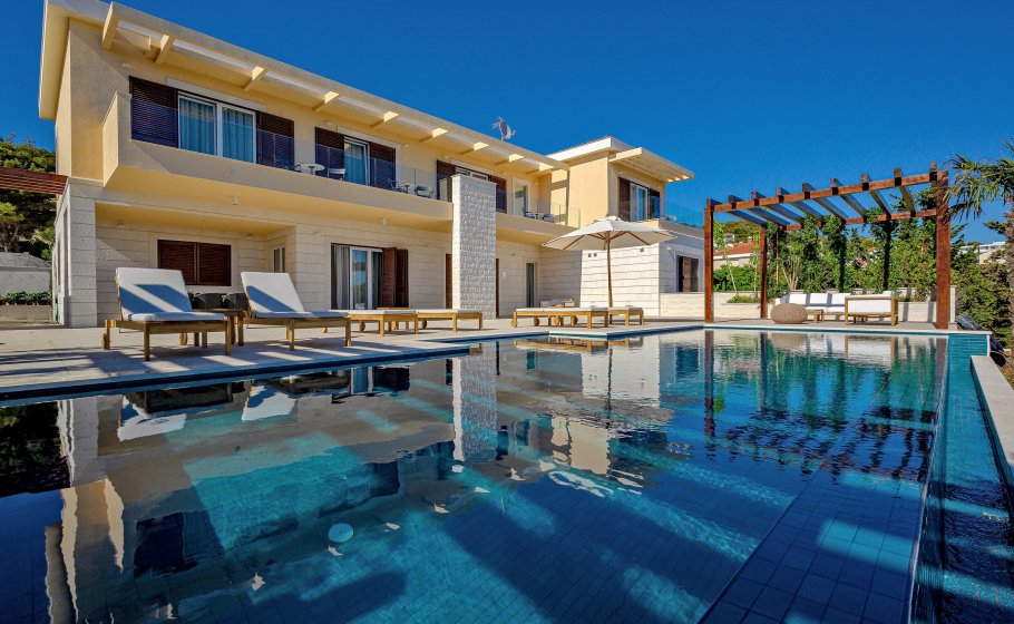 Hermes Blue is a luxurious contemporary design villa located in the town of Hvar. Perfectly situated in a peaceful area, approximately 20 meters from the sea and a 15-minute relaxing stroll from the historic Hvar town center. 547 square meters of total surface of the villa are surrounded by colorful Mediterranean greenery.