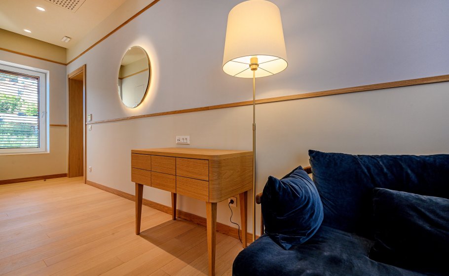 On the lower ground floor, we will find a Spa & Wellness area with a sauna and a separate shower and toilet, a relaxation area with a massage table, a room for technical equipment, and an indoor garage.
