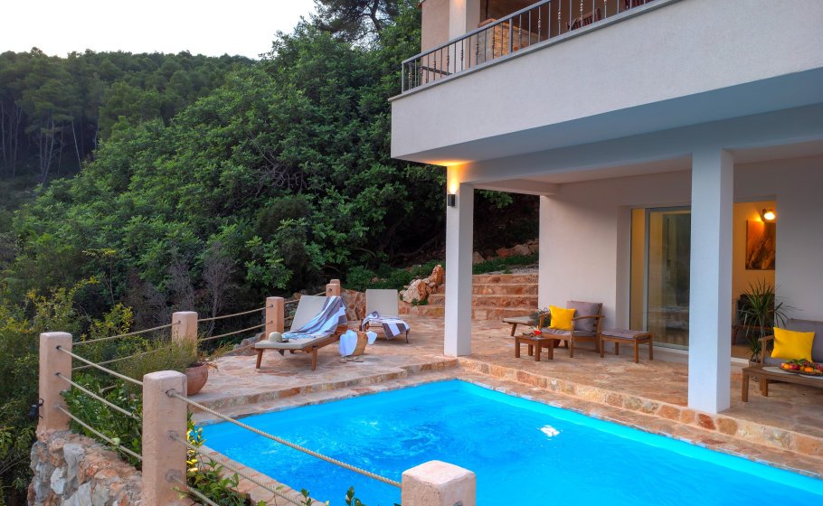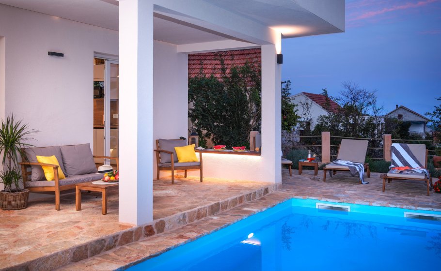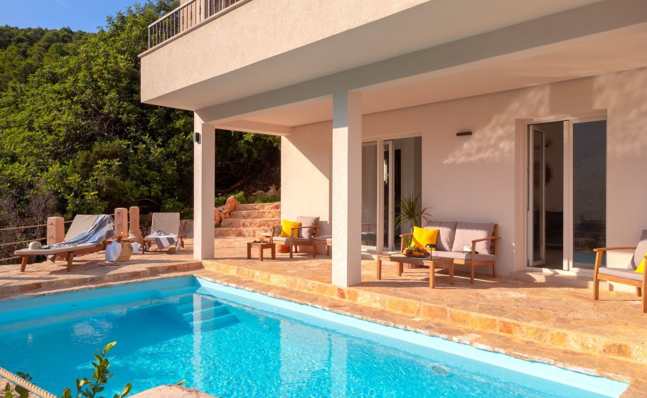 The construction of Iris began in 2009 and was finally completed in 2022. It has 350m² of interior and approximately 250m² of exterior, so you definitely won’t lack space during your holiday.