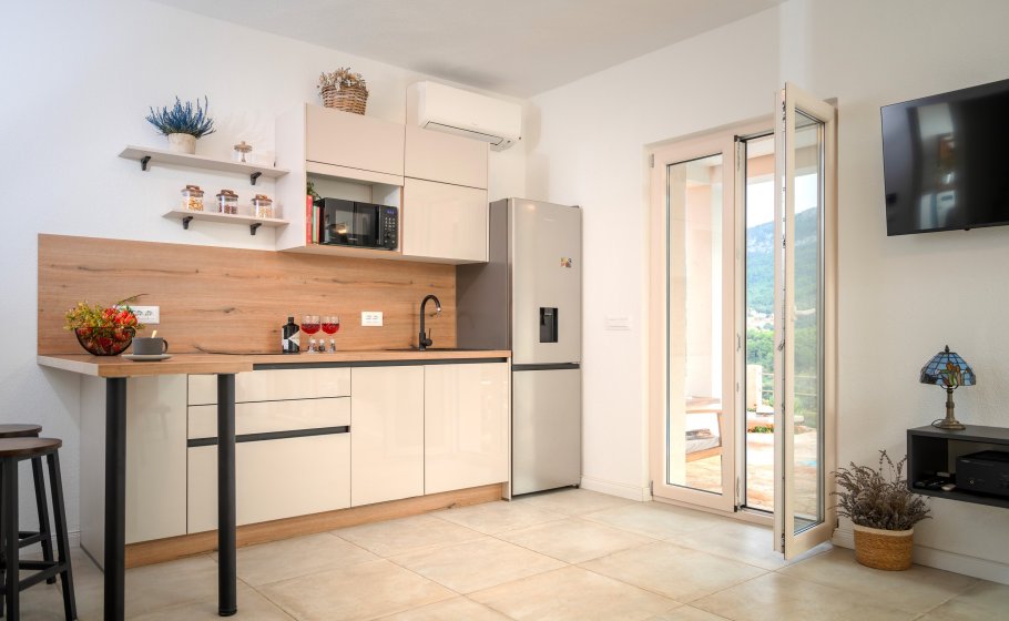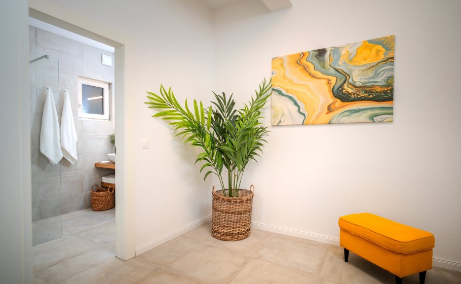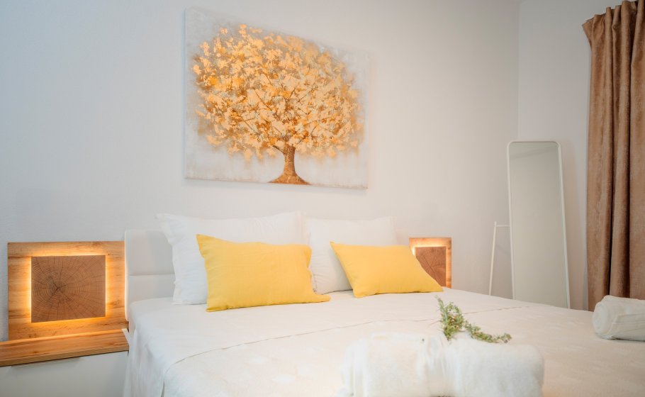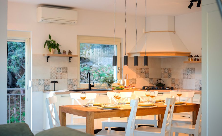 Villa Iris has a significant number of stairs, so it is not recommended for those who dislike them. The villa also houses several valuable pieces of artwork on the walls, so we kindly ask that you treat the property with the care of a good guest. Natural materials such as wood and stone dominate Iris, alongside warm colors and soft materials in the interior. Everything in the villa is unpretentious, yet very comfortable, relaxing, cozy, and welcoming.