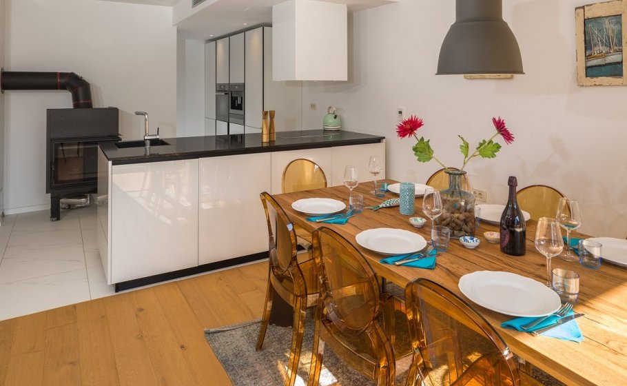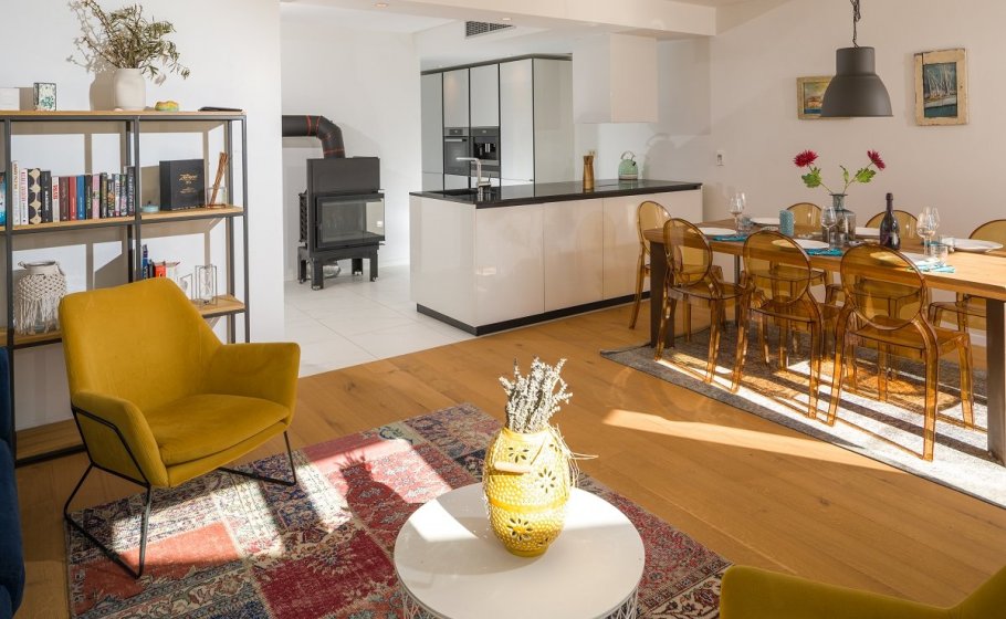 This property is an unbeatably cosy place suitable for a family, even two families, or friends. For families it is a great choice despite the road in front as the big stone wall fence guarantees safety for all.