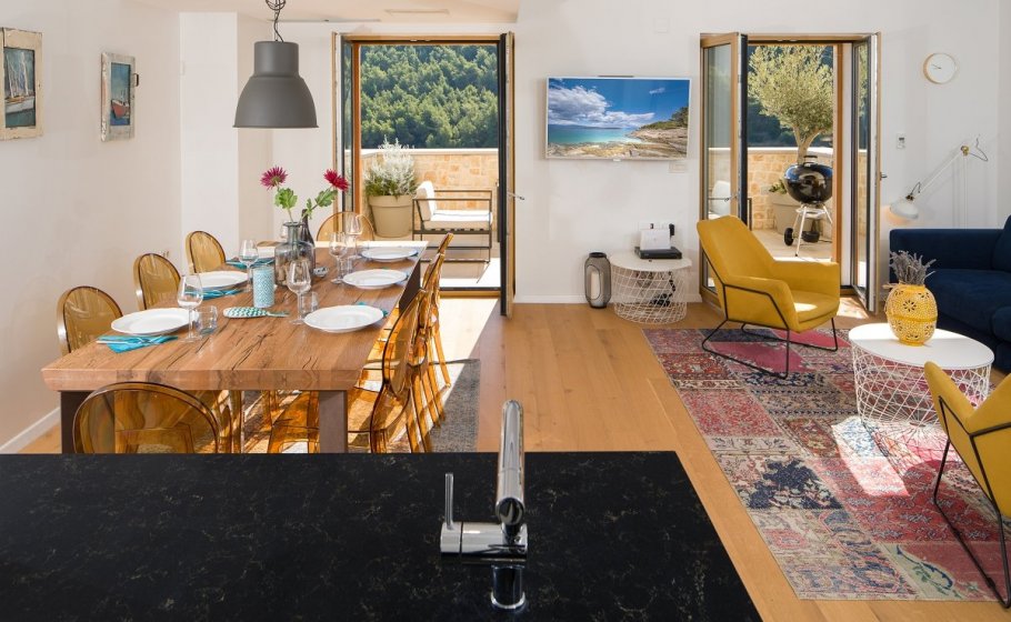Mnemosyne, one of the sweetest small villas on Hvar island, is located in one of the sweetest villages on Hvar island, Pitve. Mnemosyne is surrounded with gorgeous countryside, and the view it offers is simply perfect. To make the overall impression impeccable, it also boasts a fine little pool and ever finer interior. Too adorable to be true!