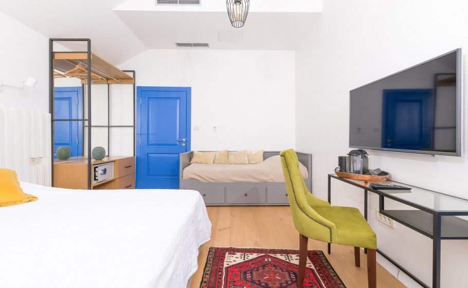 Though Mnemosyne reminds us of the past with its exterior style which fits perfectly into the historical village of Pitve, this villa is in general of a very contemporary spirit with its interiors of industrial, contemporary style and a lot of gadgets that suit today’s modern people.