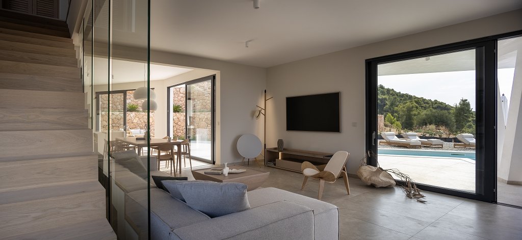Set on a 2.627m2 private estate, the villa offers 356m2 of living space across three levels, designed to maximise comfort, privacy, and uninterrupted sea views. The basement houses a private garage, technical rooms, a games room, and an elegant wine tasting room, celebrating the steep vineyards and world-class wines of southern Hvar. A fourth en-suite bedroom provides additional privacy for guests.