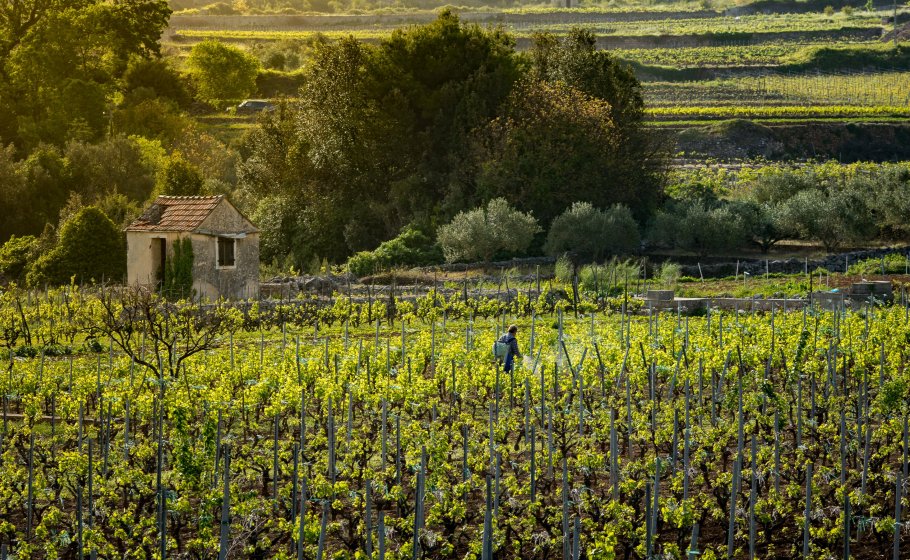 Your private guide escorts you into the quieter heart of Hvar’s countryside, where ancient vines ripple across terraced hillsides and the Adriatic glimmers in the distance.
