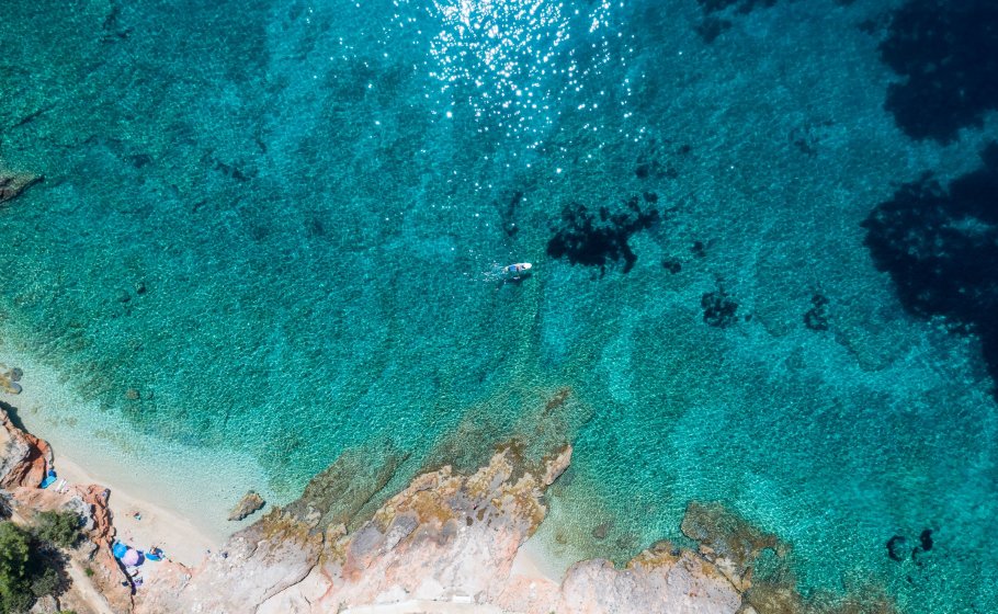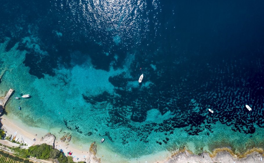As mesmerized, we could gaze towards the island of Šćedro for hours; in the middle of the turquoise blue satin sheet which extends in perfectly straight folds, in one instant smaller and other instant bigger, to its equally playful and irresolute friend, the sky. This is where Lelantos and love reside.