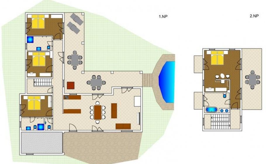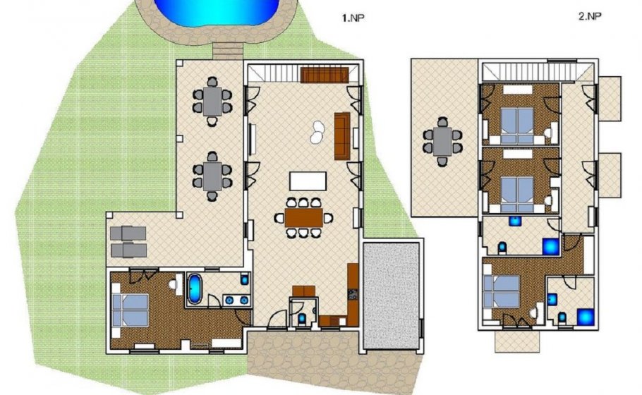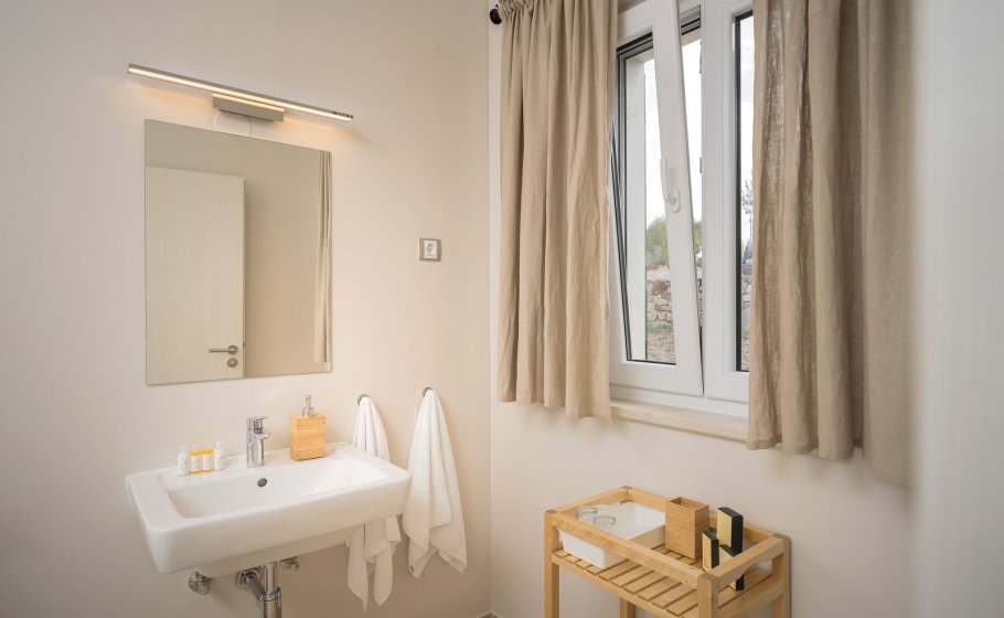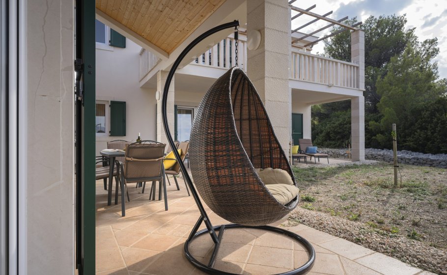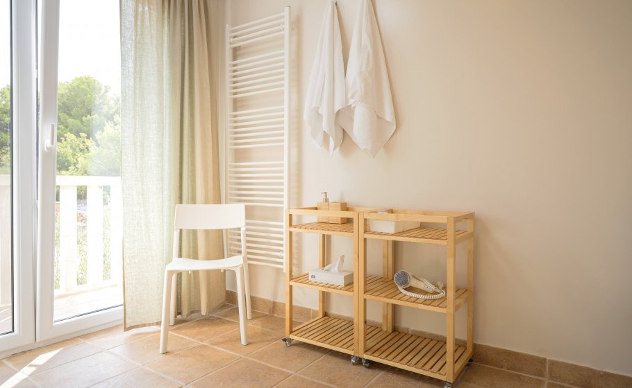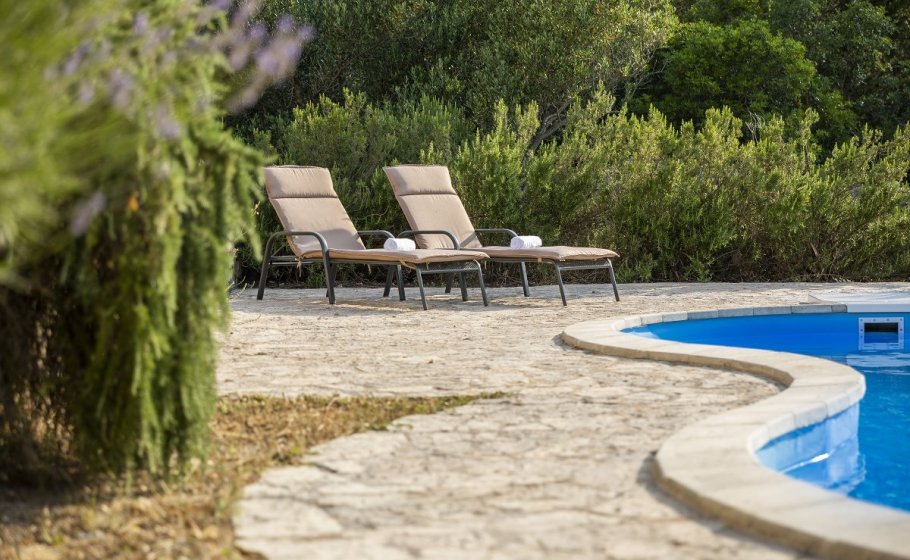 Der Villenkomplex ist von einem Kiefernwald umgeben und bietet einen wundervollen Meeresblick. Das Tolle an dieser Villa ist, dass sie vollkommen isoliert und zur gleichen Zeit nur zwei Minuten von der nächsten Stadt entfernt ist. Ihre Annehmlichkeiten erinnern uns an schöne und elegante Nymphen, die zu der schönen Wald-, Wind-, Wellen- und Grillenmuzik tanzen und Reisende hypnotisieren, die nicht anders können als eine Pause zu machen und sich zu amüsieren.