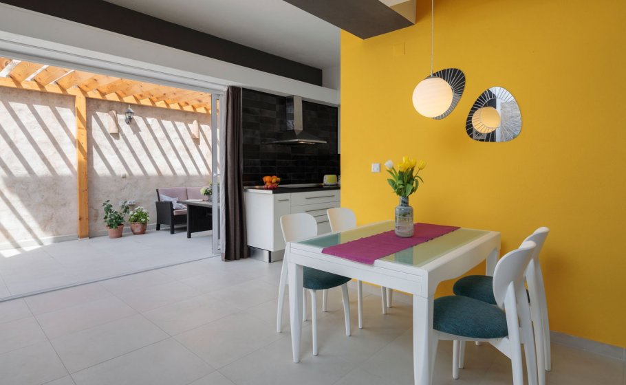 The cottage consists of three bedrooms, two bathrooms and a large front yard covering 70m2 m, providing full privacy, shaded and sunny parts and - what is very important - it is very kids friendly. The kitchen and the living room are connected with the front yard through a 5-meter wide glass sliding door, making it a large playground (100m2) surrounded with a three-meter wall, so privacy and safety are guaranteed.
