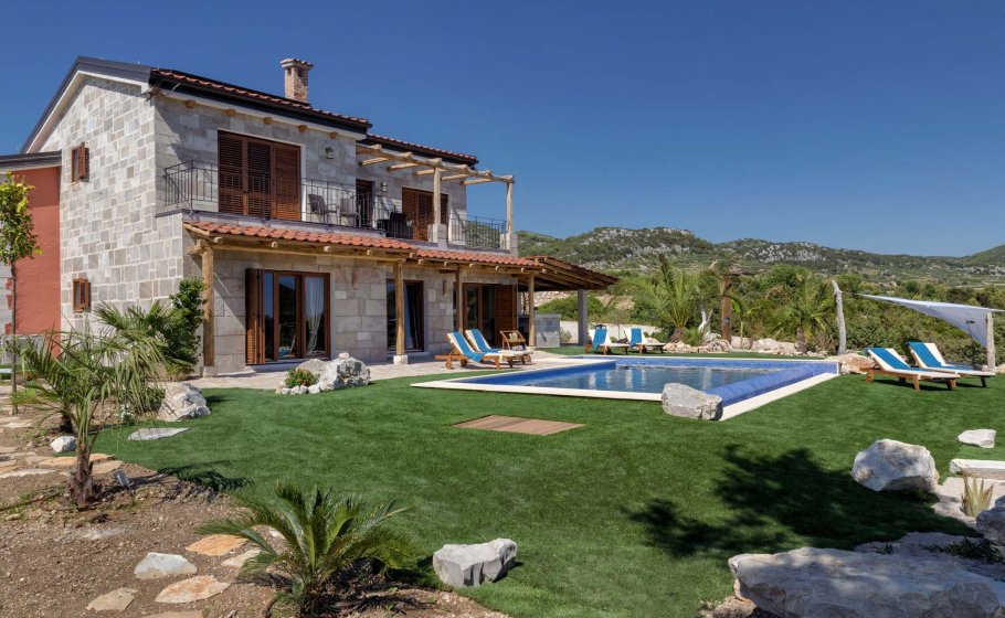 The villa Selene In The Mirror is a completely new stone house the size of 230m2. It was completed in 2017. The villa is located at the entrance to the city of Hvar, at a place where nature meets the first houses of Hvar town. If you are taking the new road from the direction of Stari Grad to arrive to Hvar - before you reach the houses, you will take the branch on the left, follow the road, go around the first house (no, that is not your villa!), and take another few meters until you reach the parking spot of the villa Selene In The Mirror, next to the villa Selene.