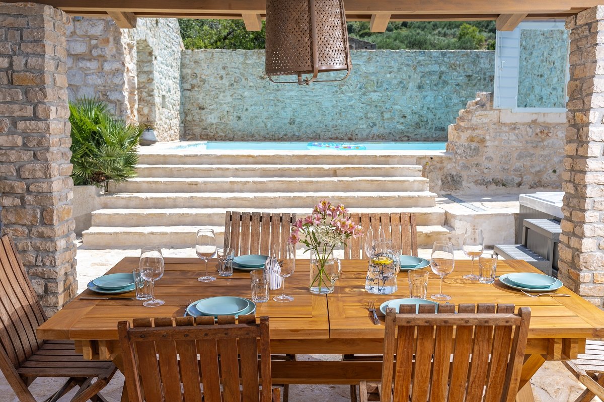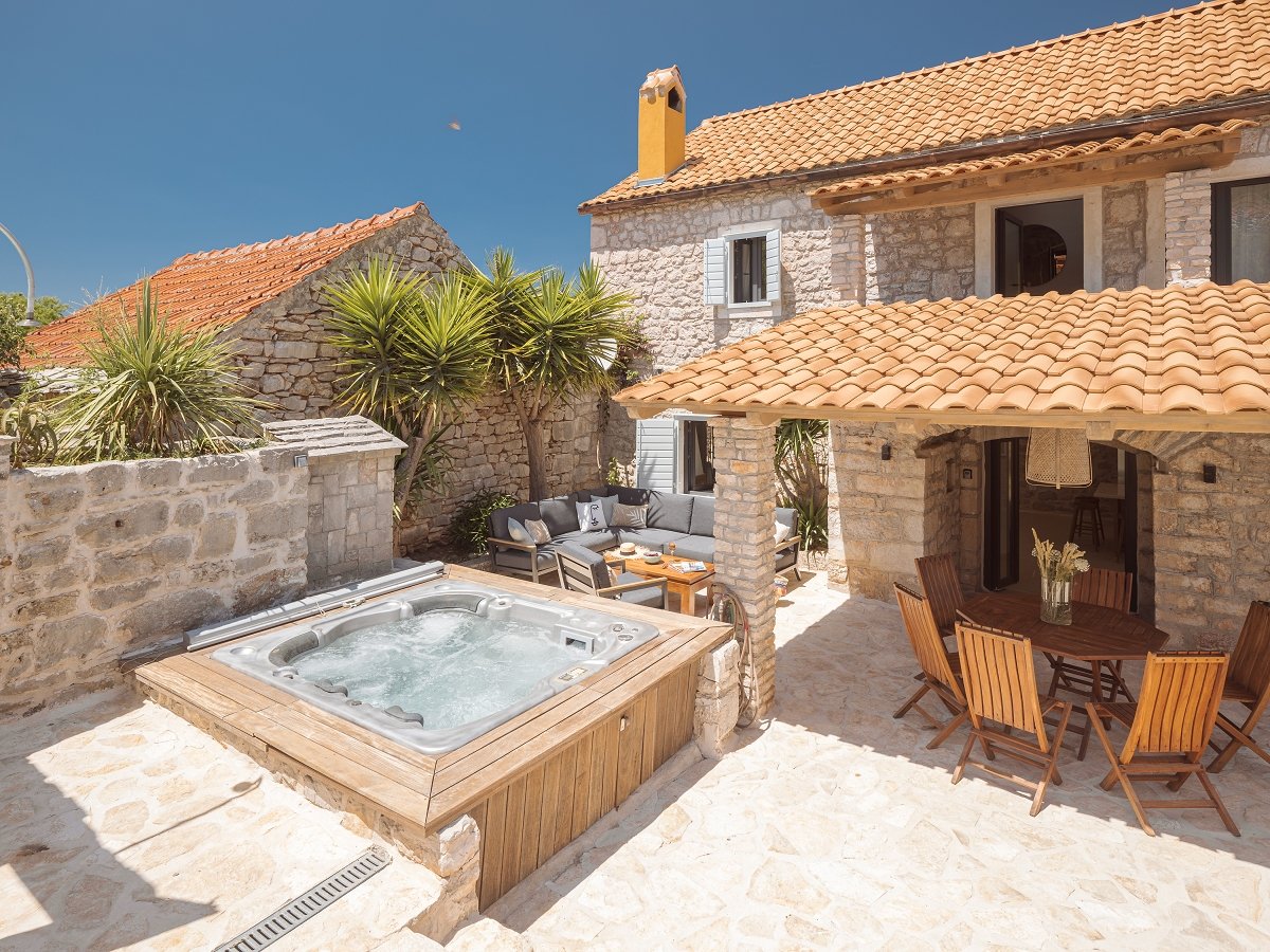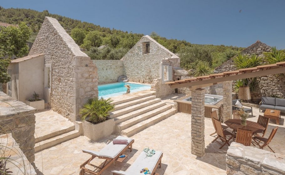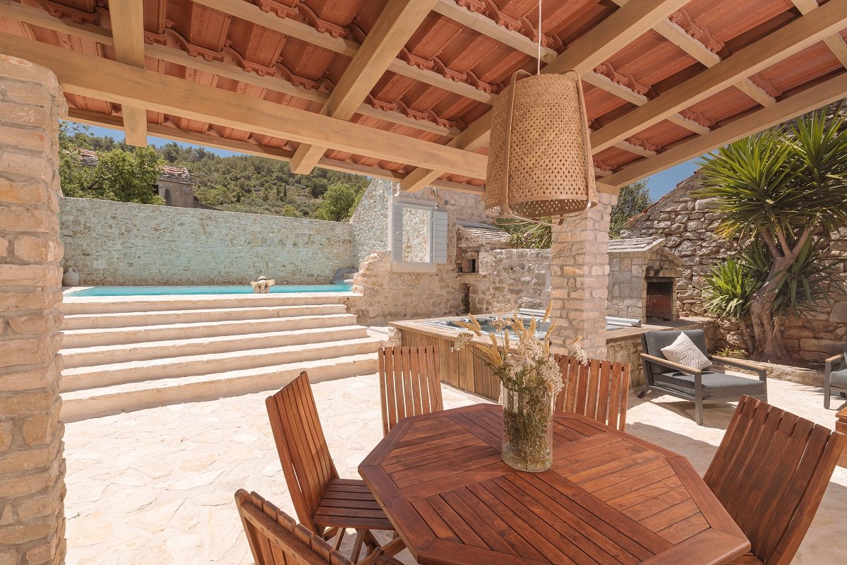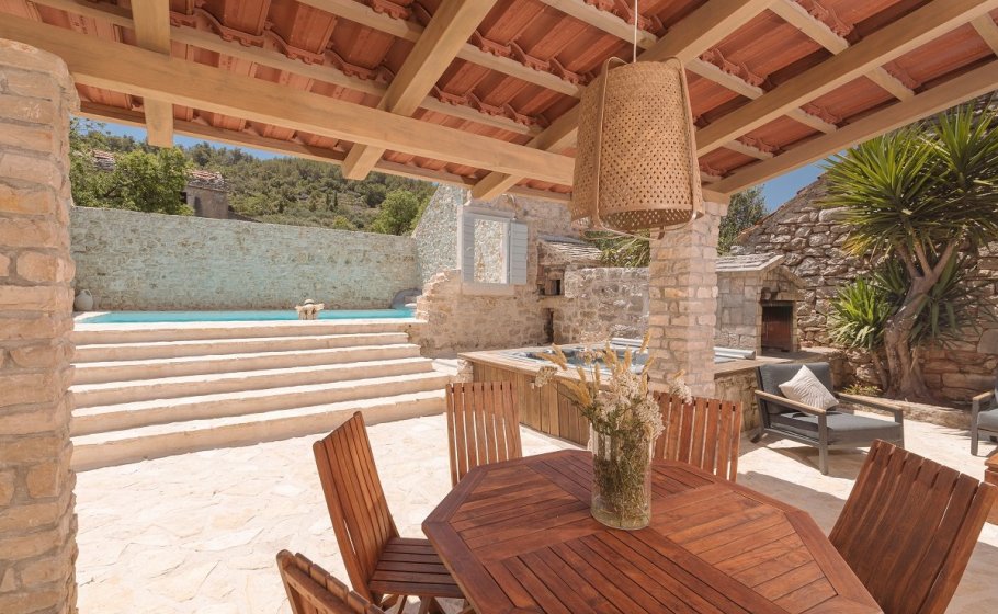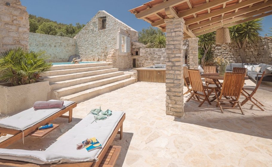 In the already mentioned courtyard of the villa you will find a (heated if necessary) swimming pool of 35m2. No less important, in this area you’ll find Mediterranean herbs that will please your all senses. You also have a jacuzzi, a lounge area, a dining area and barbeque facilities, because you can't be on Hvar, in such a surrounding, and not have grilled fish for lunch or dinner, at least once. That would be utter blasphemy.