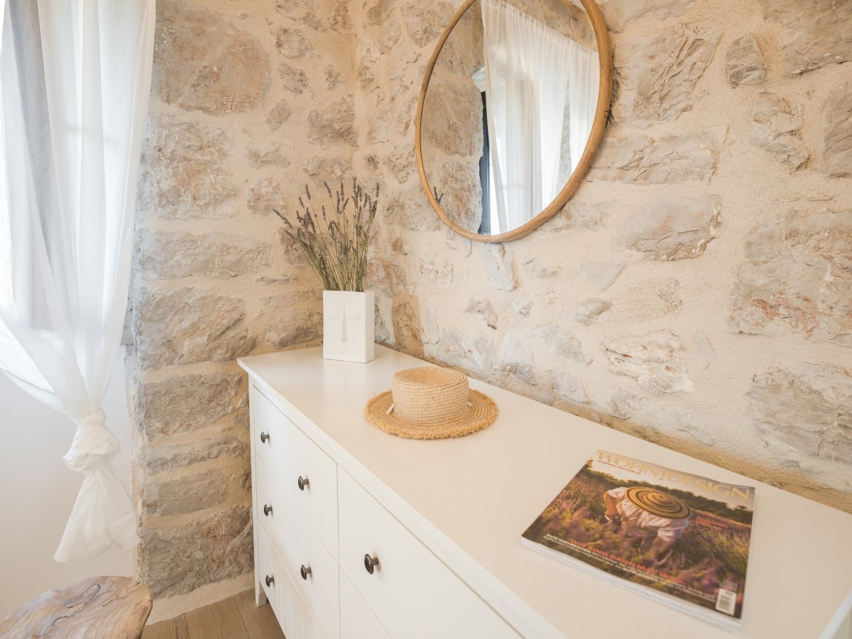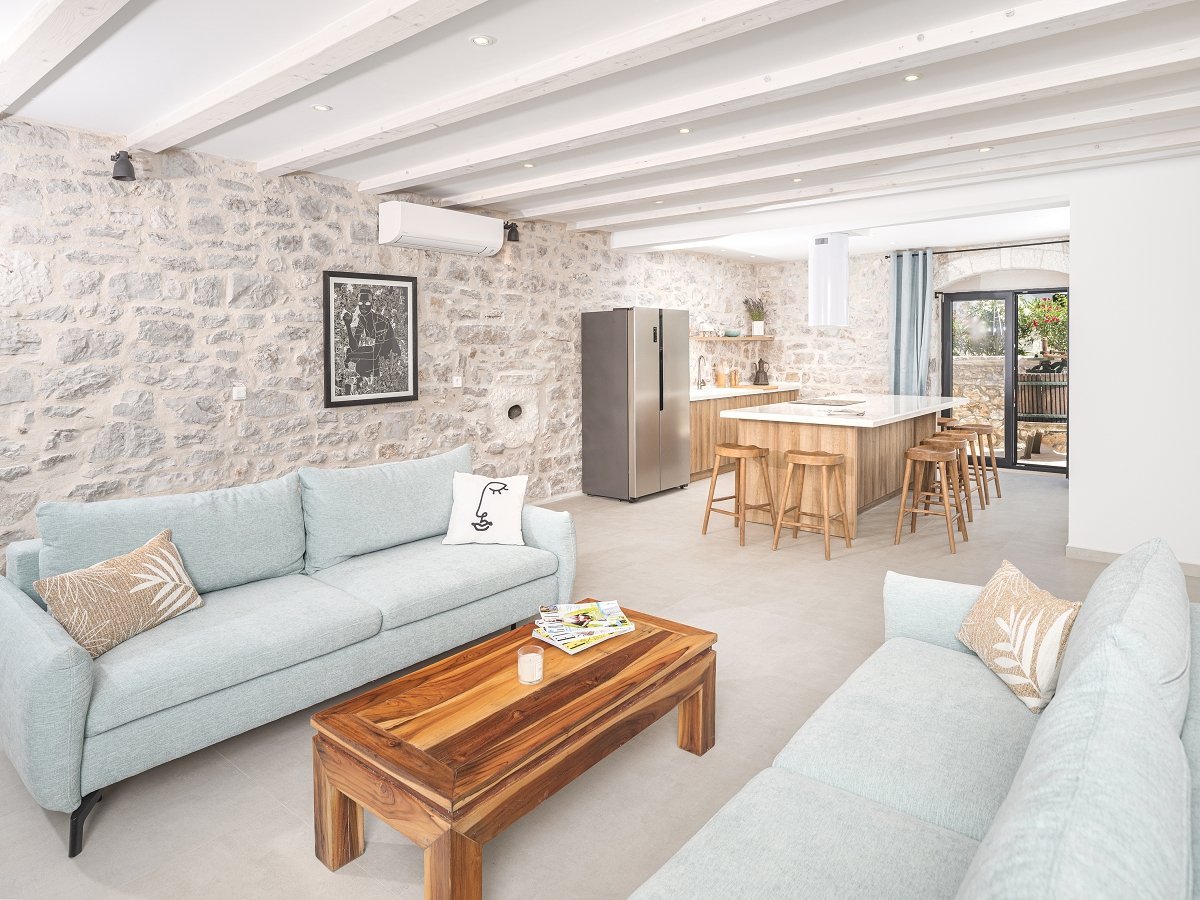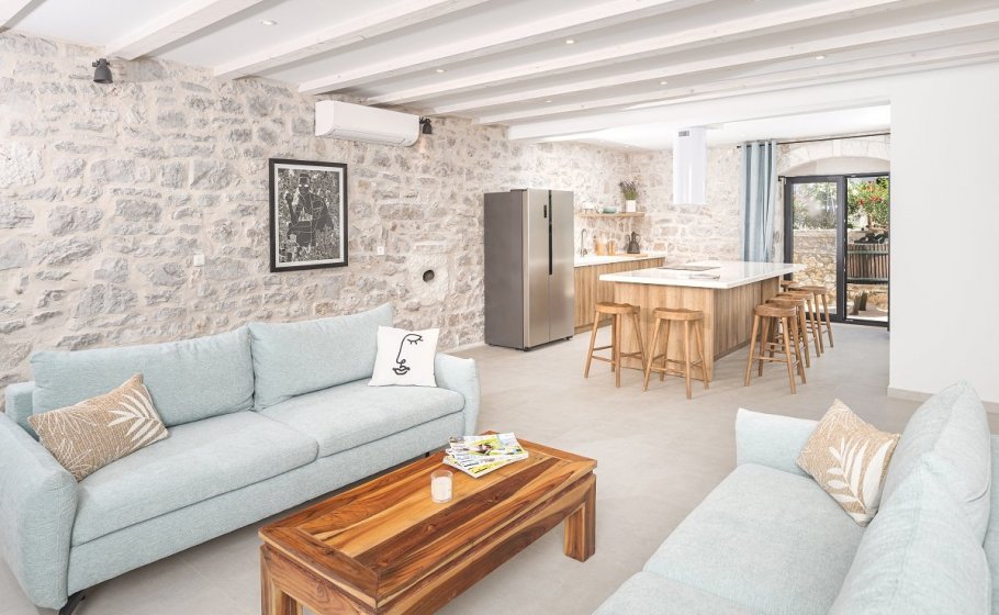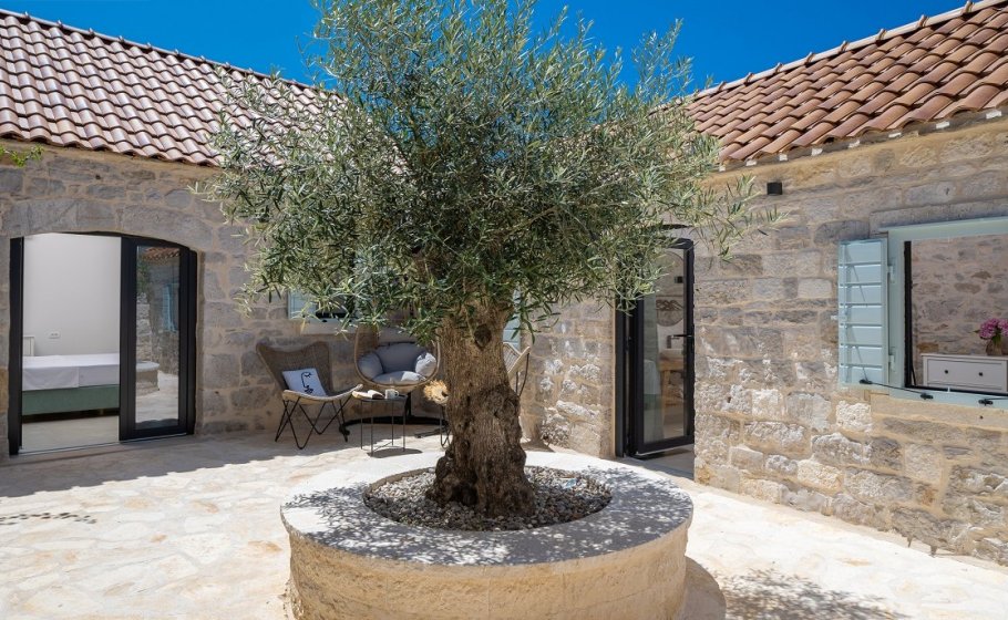In villa Aion you can enjoy the beautiful traditional courtyard, which covers 100m2, but also fine modern interior of the main house on 2 floors spanning across 120m2 in which every detail, every material, and every color are exactly as they should be and exactly where they should be.