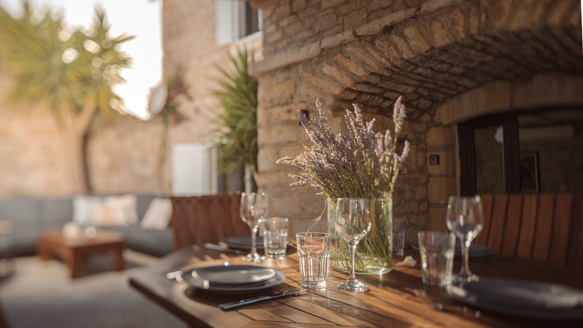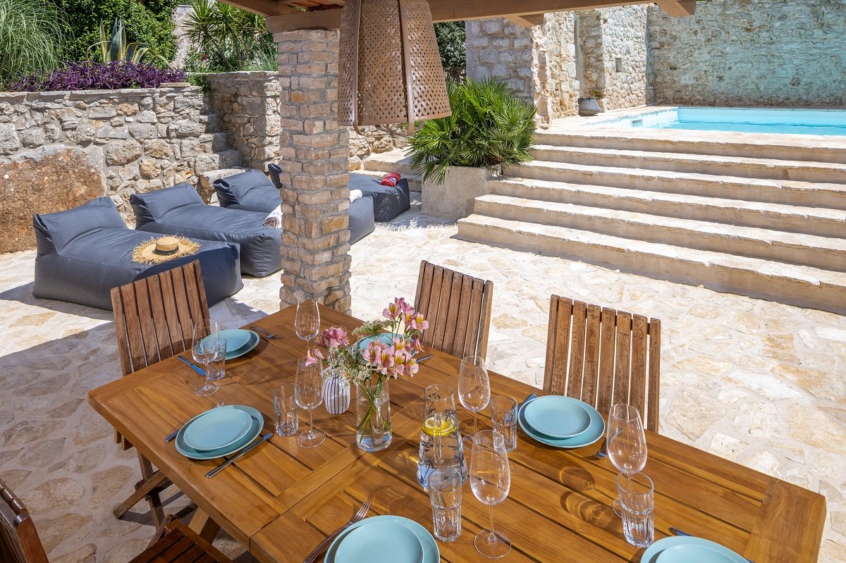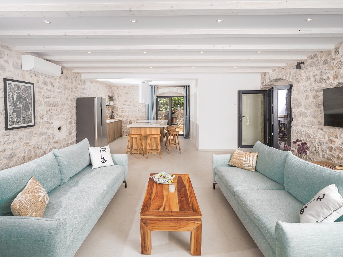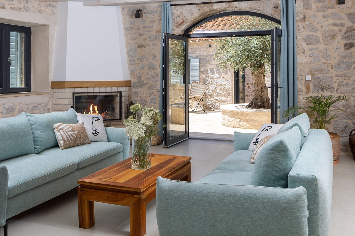 In villa Aion you can enjoy the beautiful traditional courtyard, which covers 100m2, but also fine modern interior of the main house on 2 floors spanning across 120m2 in which every detail, every material, and every color are exactly as they should be and exactly where they should be.