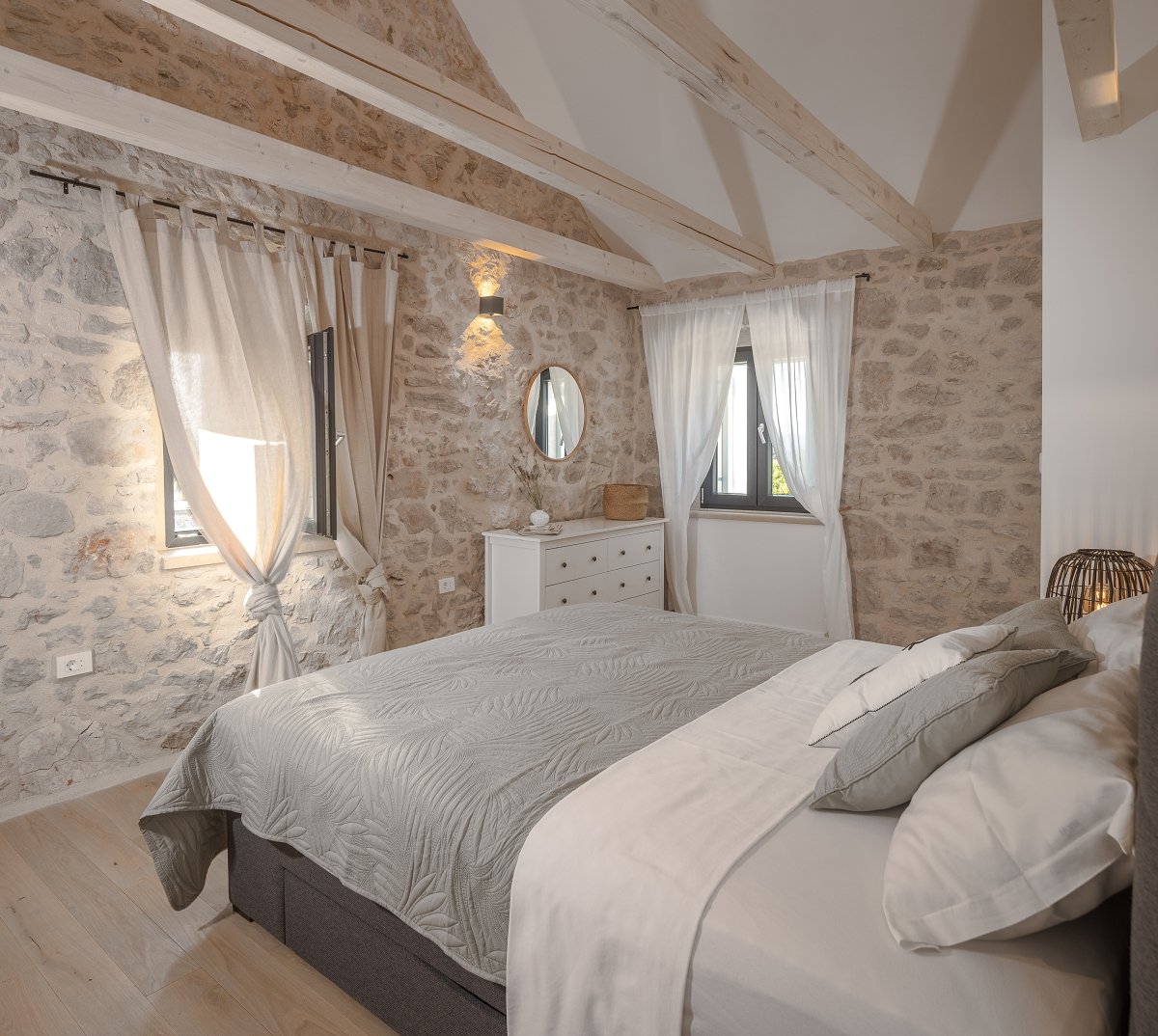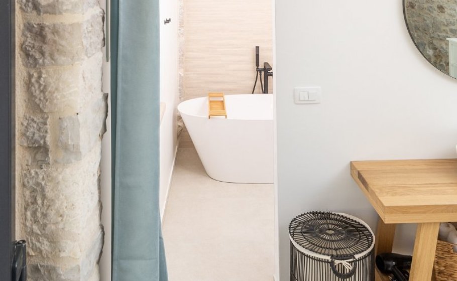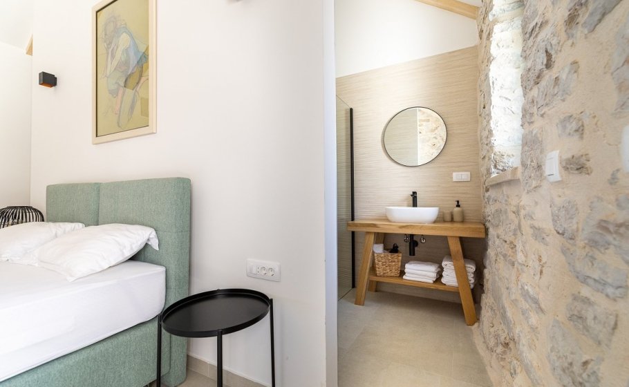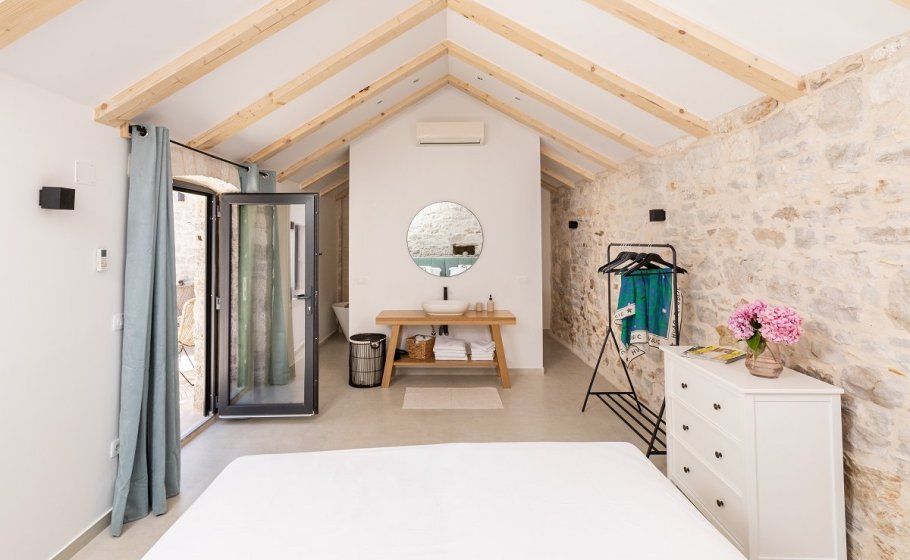 In 2023, the owners built two additional stone houses on the property, each of 25m2. Inside each house there is a bedroom with a 1.80m x 2m bed, which can be separated if necessary, and each bedroom has its own bathroom with shower. Additional houses are connected to the main house by a small yard that belongs to the Aion property.