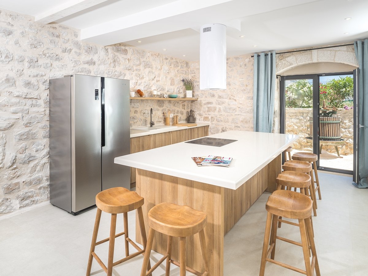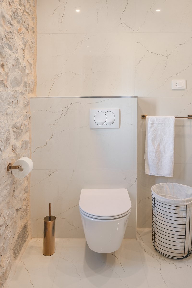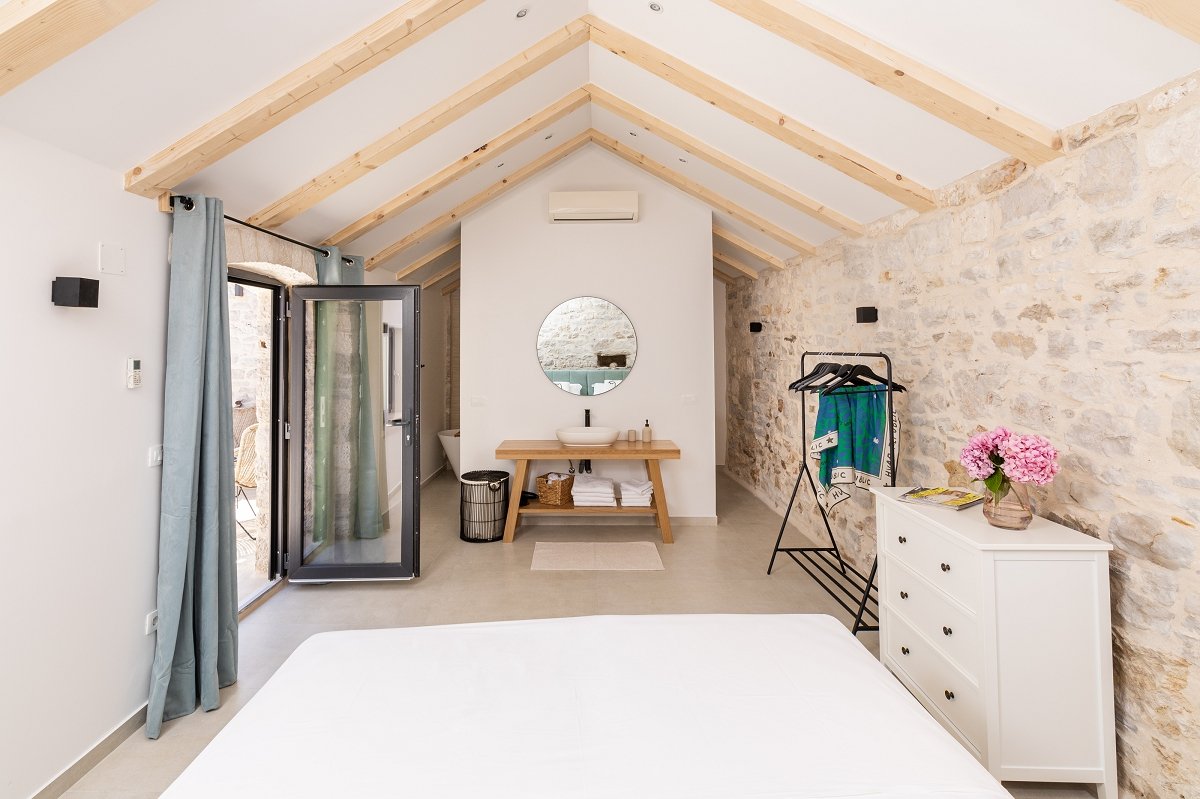 The first floor of the main house has two bedrooms with matrimonial beds, each measuring 1.80m x 2m. By the way, the beds are Perfecta Dreams, so you can dream beautiful dreams in dreamy Zastražišće while you are awake, but also when asleep. To make everything just right – each bedroom has its own bathroom with a shower tray.