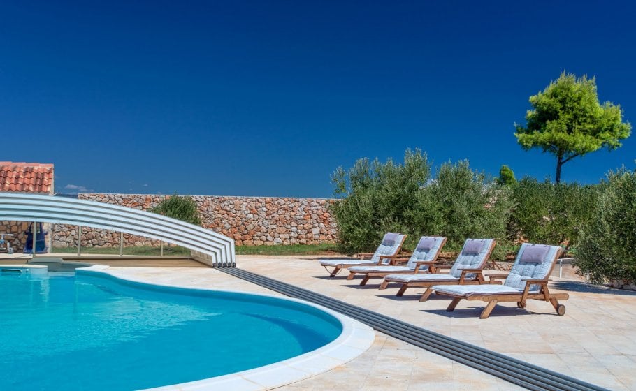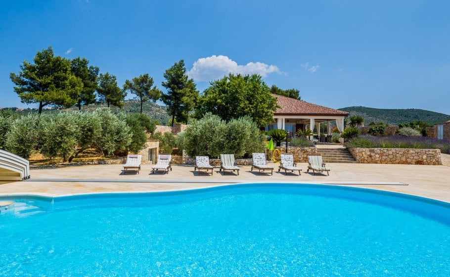 A marvelous 200 meter square porch that provides the most amazing NW view to the islands of Vis, Šolta, Brač and mainland Split. Right in front of the porch lounge area there is a 77 meter square heated pool.