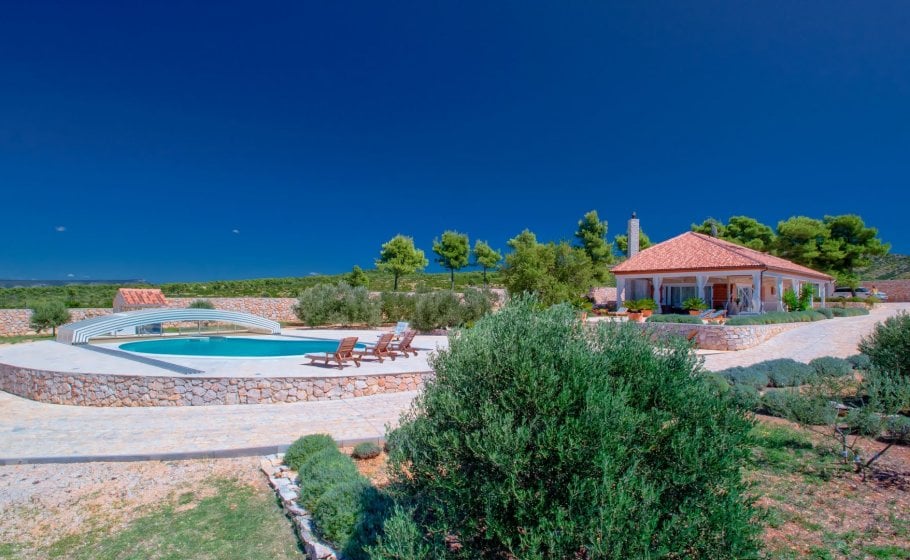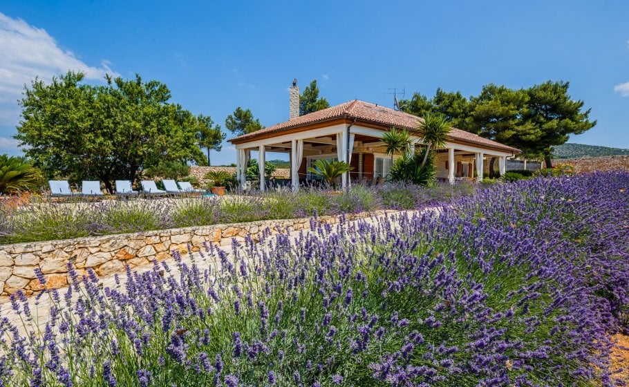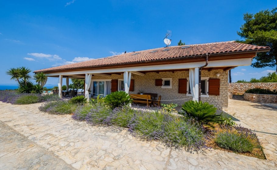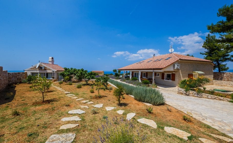 A glorious windswept Villa Caerus is situated on the top of the hill, overlooking the sea, on the 7000 square meters plot that is surrounded with the 2.5 meter tall wall. Around the villa on the plot there are 70 planted olive trees.