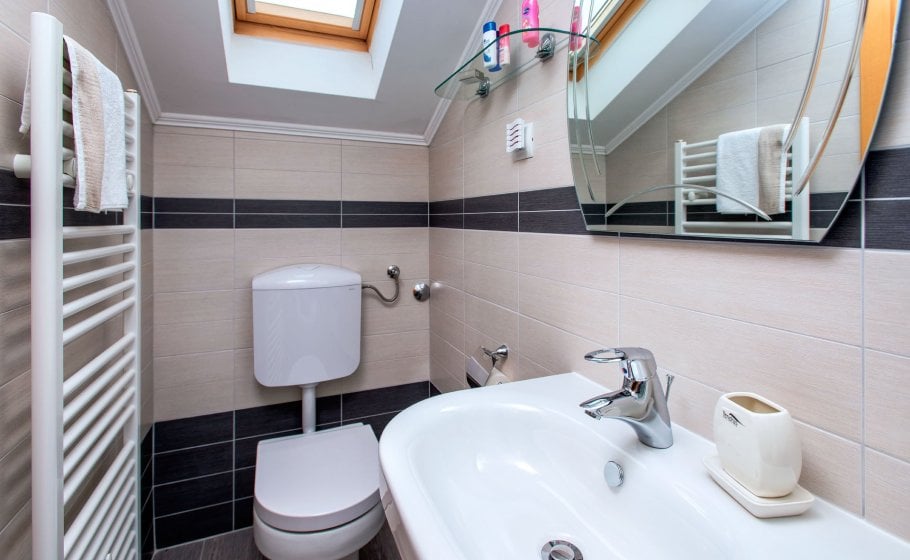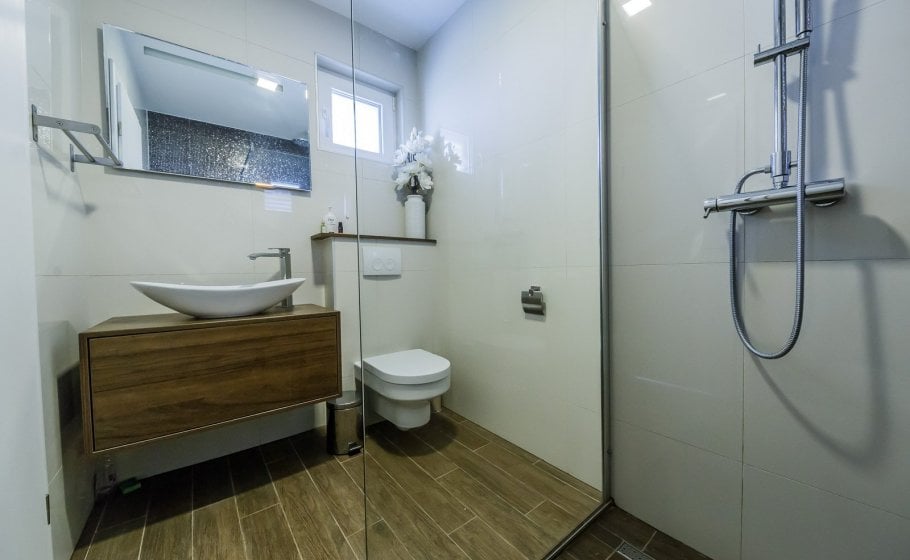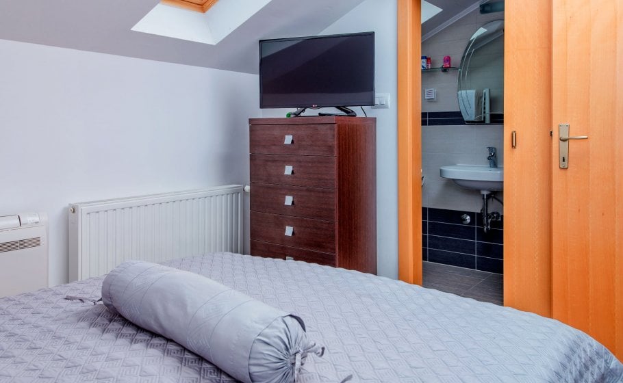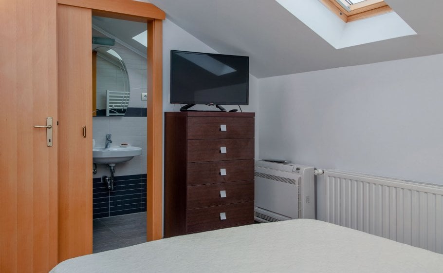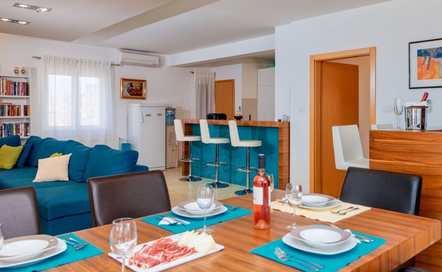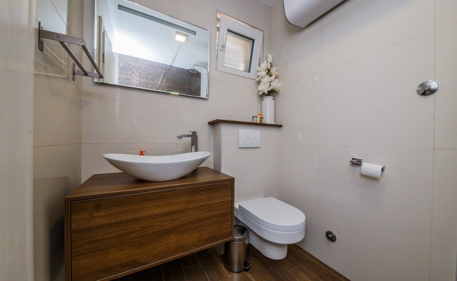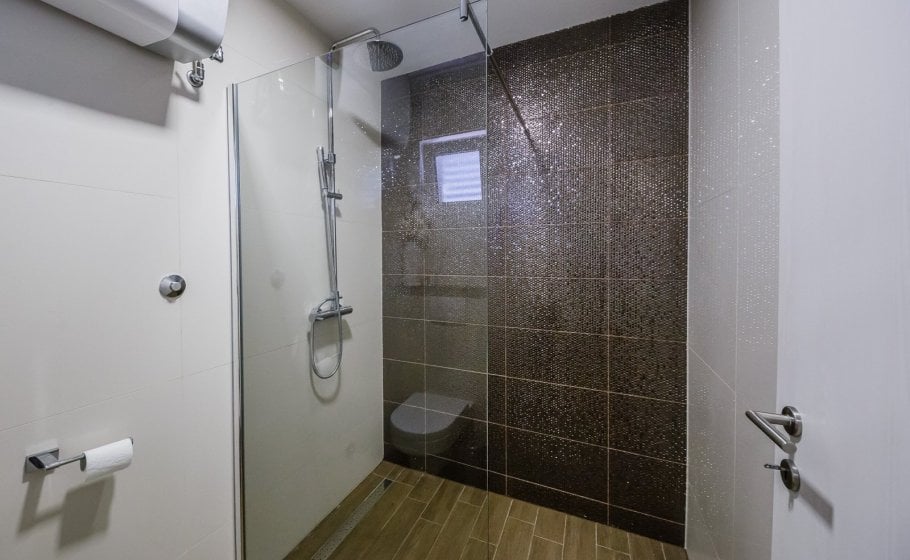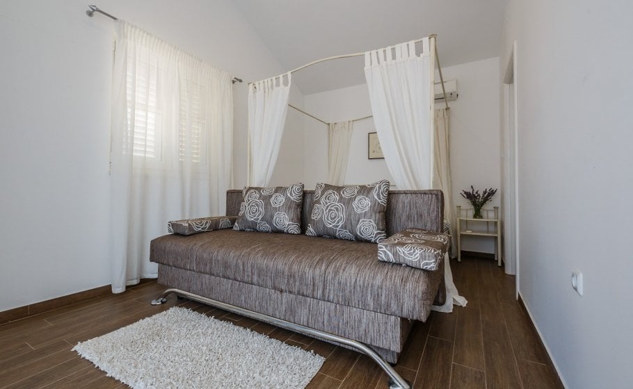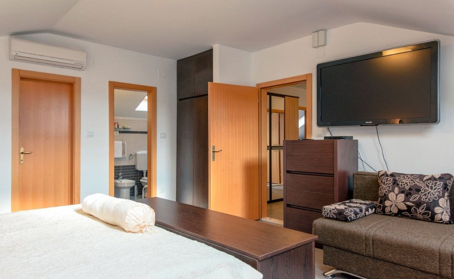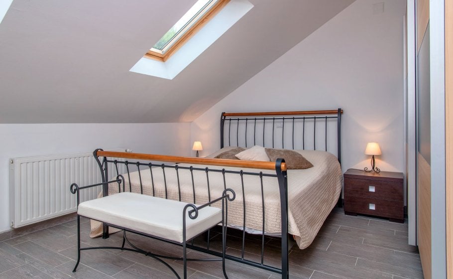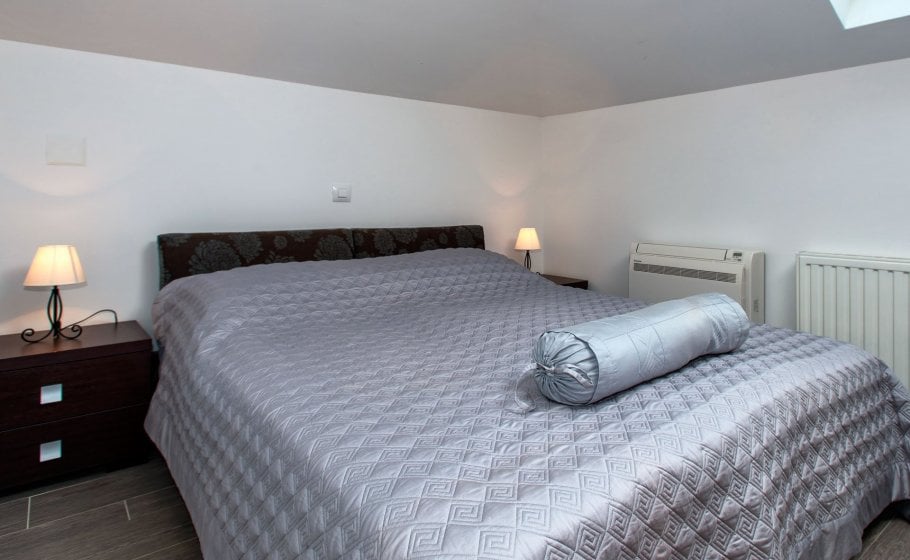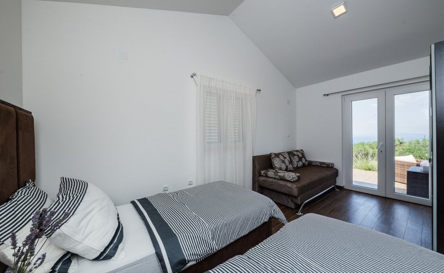 On the ground floor there is a spacious 80 square meter living room with large sofa (which can be converted in bed for 2 persons), wide screen LCD and bar spacious indoor kitchen with every amenity. There is a large table for 10+ in the dining room and a large fireplace. Double bedroom with two single beds and its own bathroom is also located in this area of the villa.