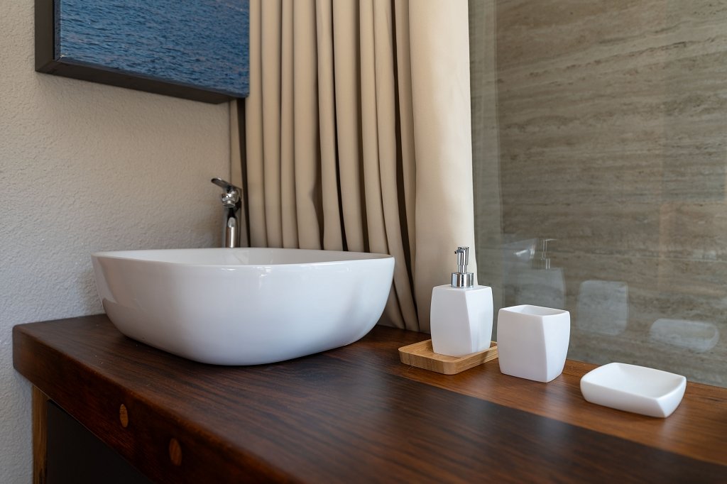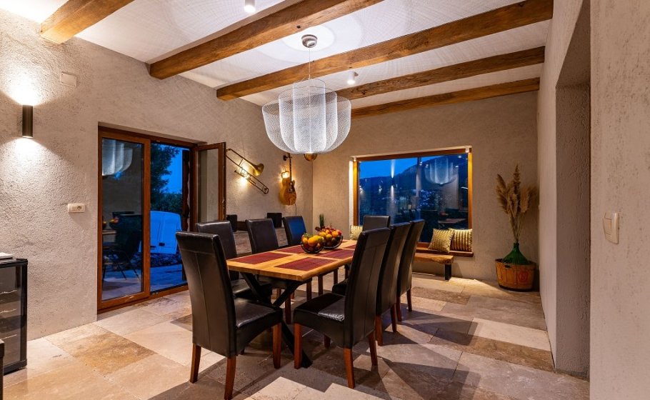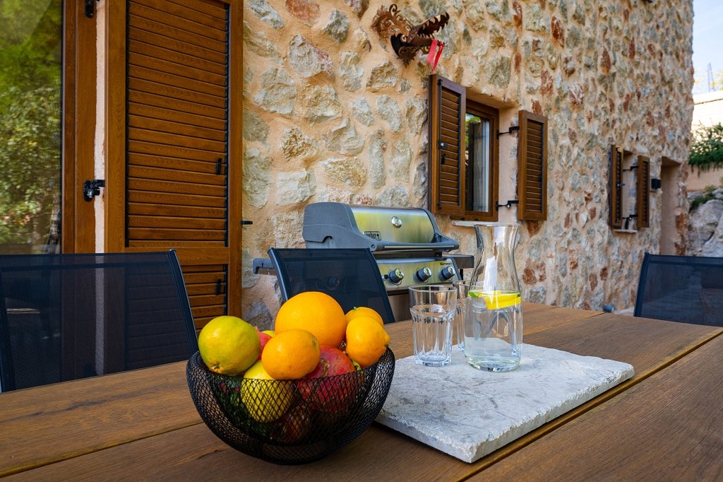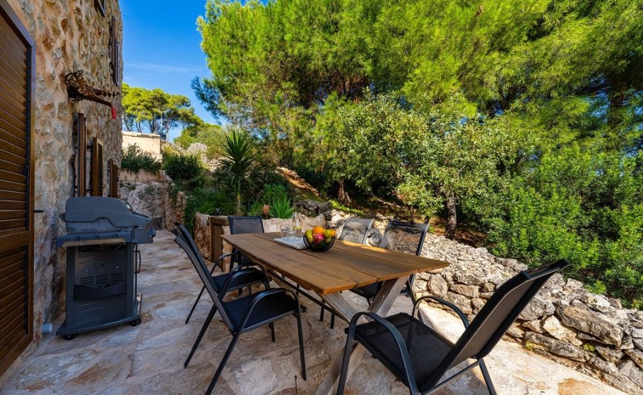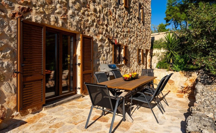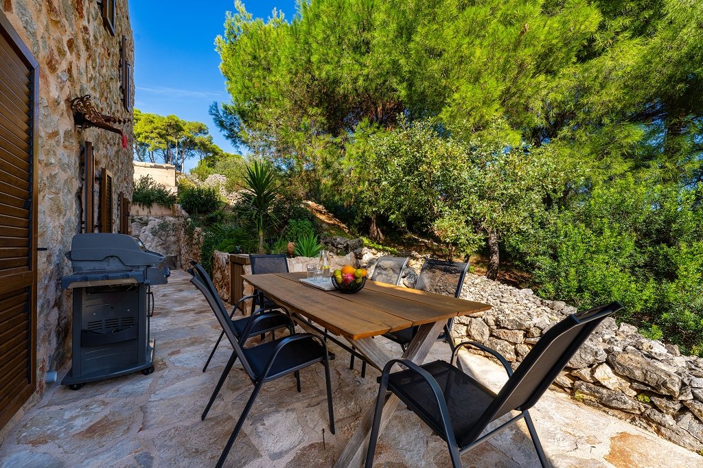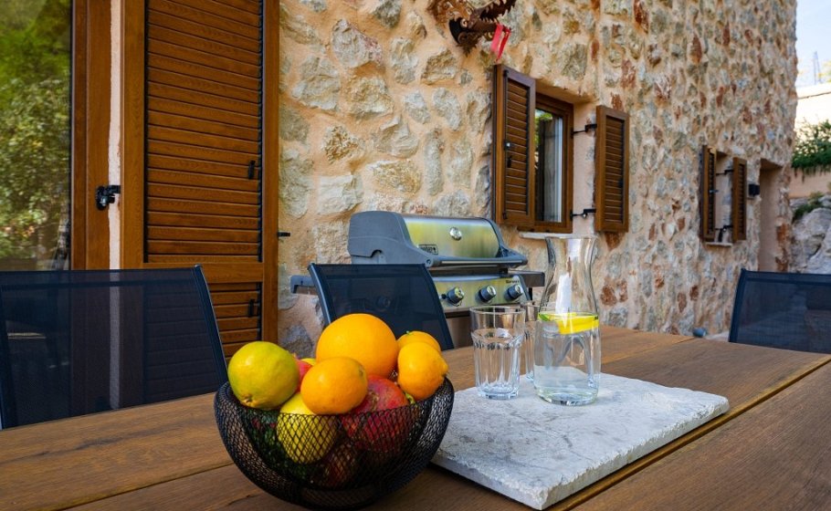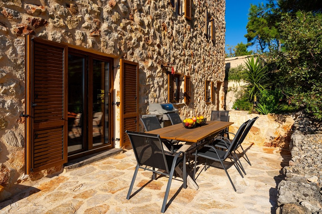 Outdoor Dining Terrace: On the opposite side of the villa, and conveniently accessible from the kitchen, you’ll find the main al fresco dining area. This secluded, shaded terrace features a large dining table and a barbecue setup—ideal for long, leisurely meals outdoors.