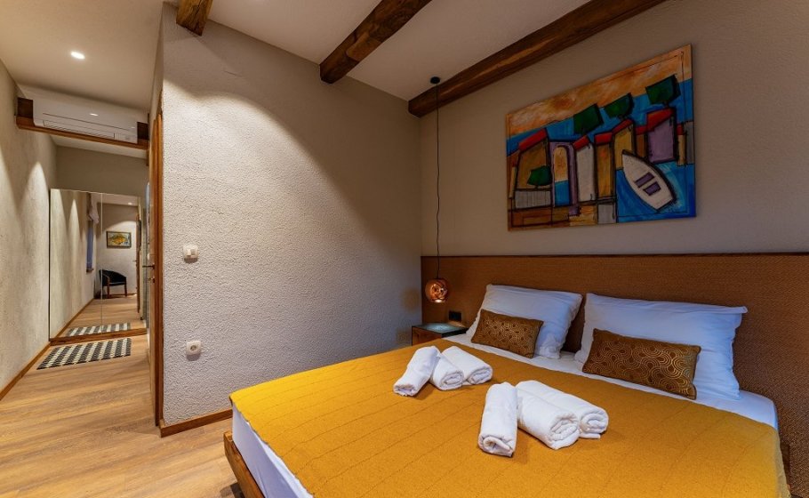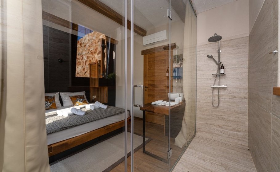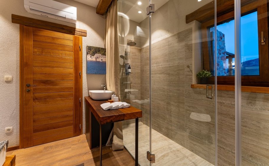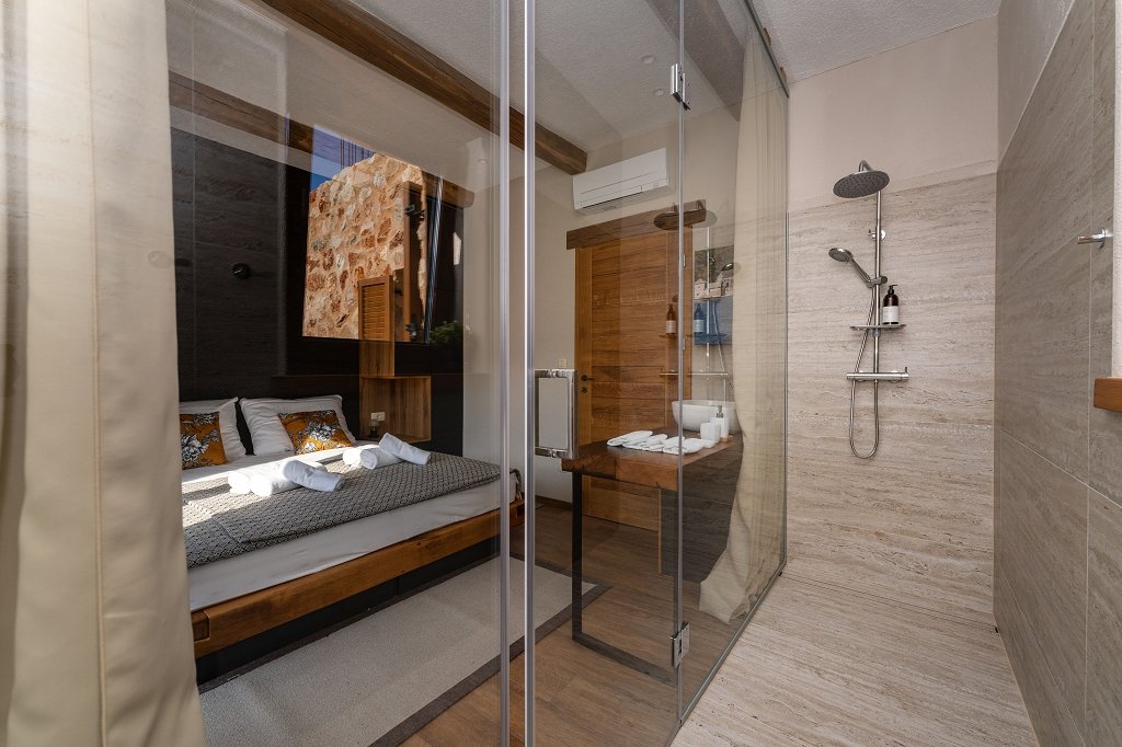 Upstairs, Villa Fisola hosts three beautifully appointed en-suite bedrooms. Each features a centrally placed king-size bed and a private bathroom with a walk-in shower.