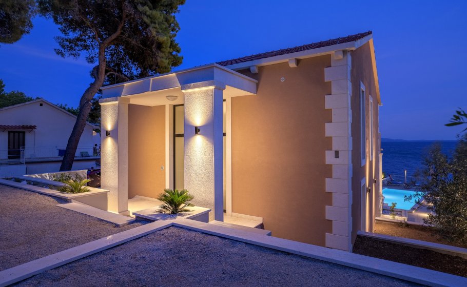 Galateia is located on the south side of Hvar. It has a beautiful pebble beach in front; you could jump into the sea from the terrace, but don't do it. On the terrace, there is a pool for big people and a pool for small people. Galateia offers perfect sunrises and even more perfect sunsets. And no, we're not exaggerating.