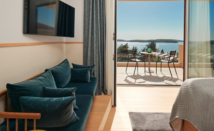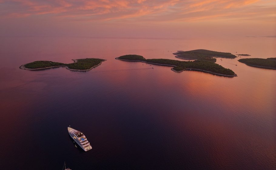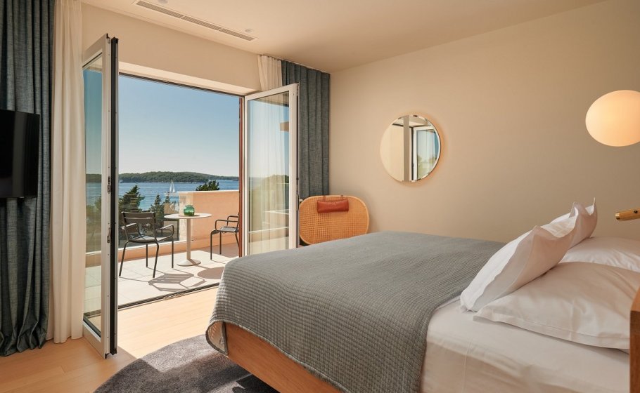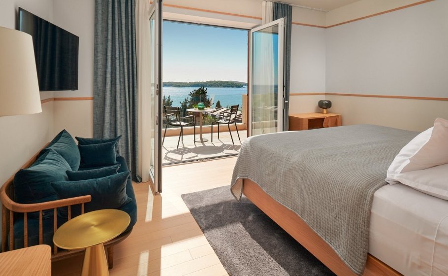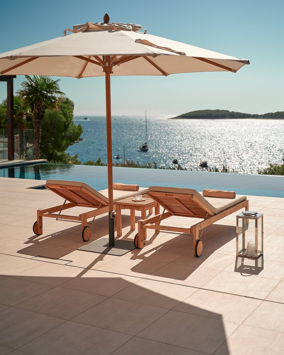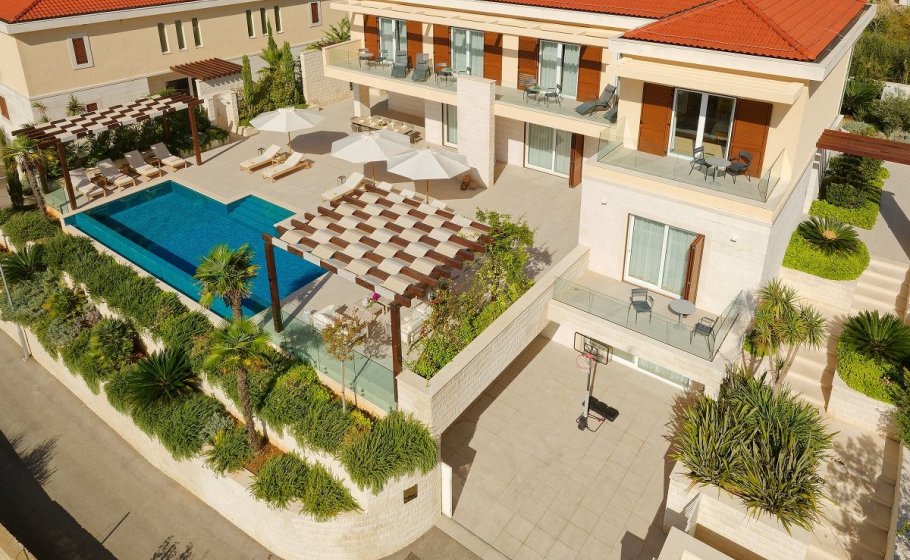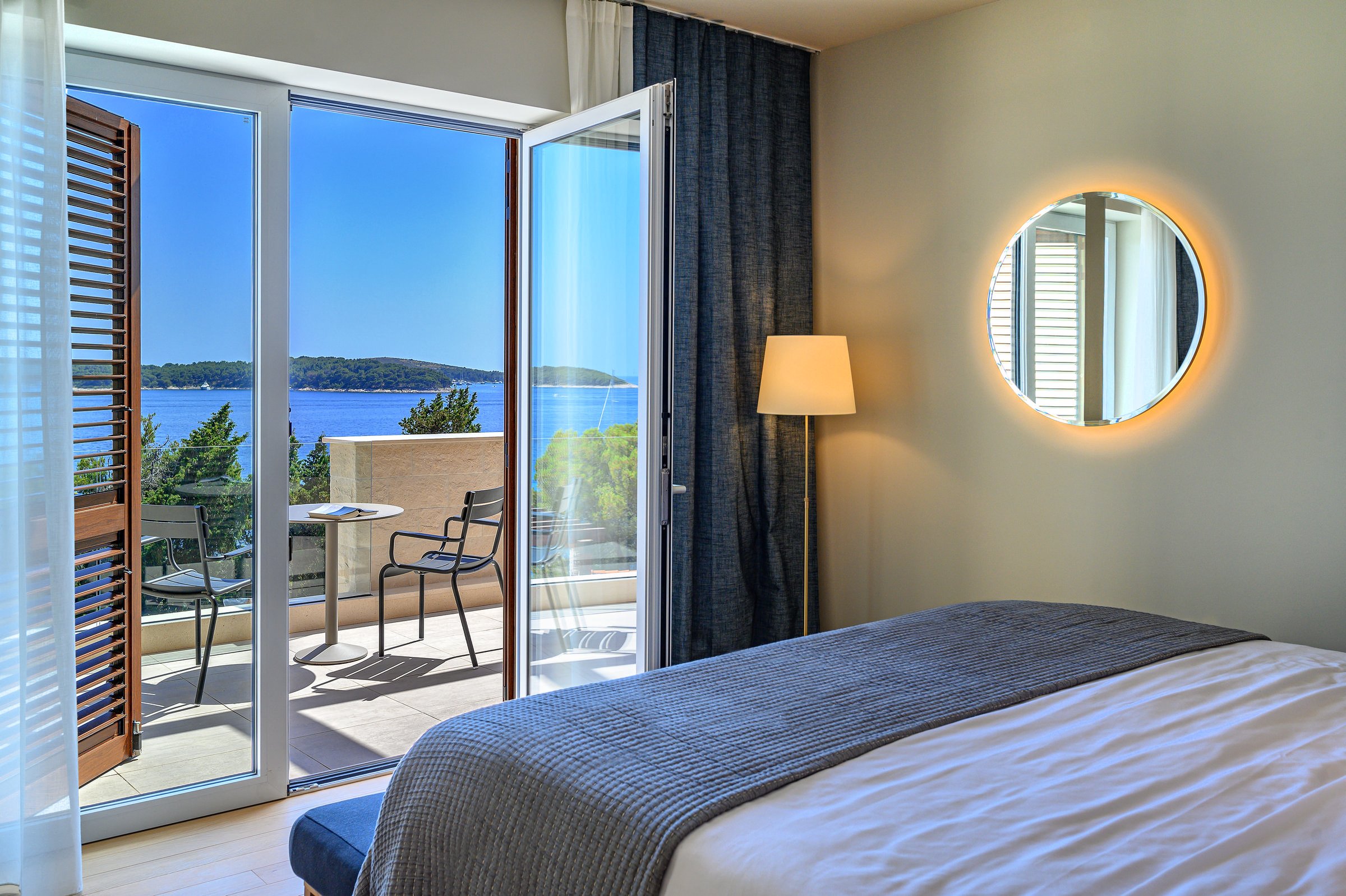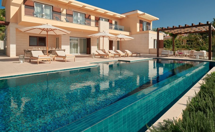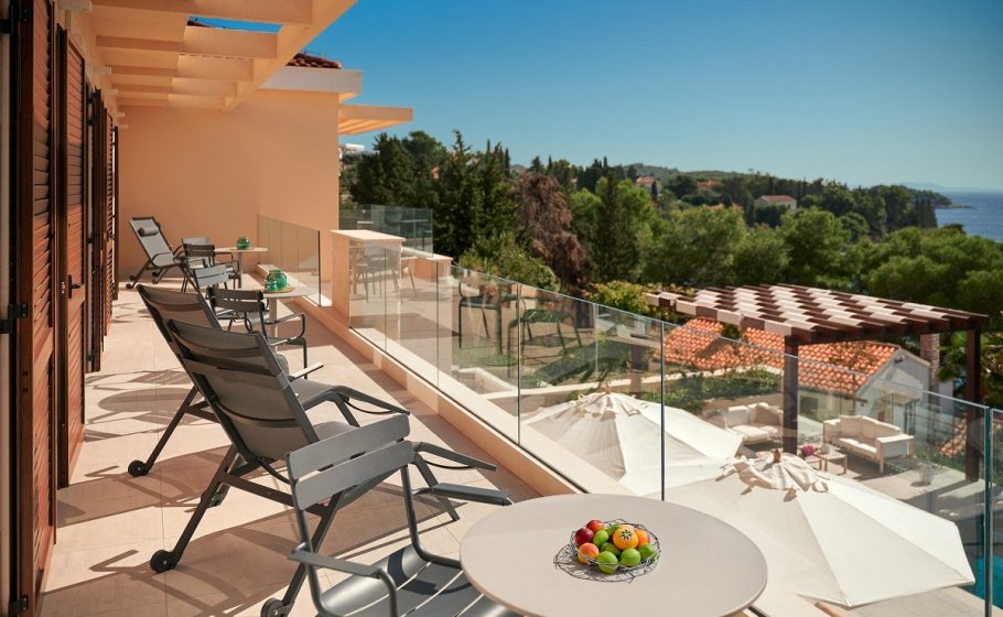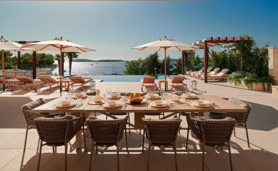 The villa can accommodate 10 persons in total. Guests have at their disposal 5 bedrooms, each with an en-suite bathroom, a HD satellite system (Astra), LCD TV, fiber-optic internet, dual-band Wi-Fi indoor and outdoor, SONOS music systems for public and outdoor areas, as well as Hitachi central air conditioning with individual room control. All the rooms have balconies, offering astonishing sea views. The outdoor space is enriched with several relaxing and dining areas: the main terrace with a table for 10 persons, a lounge area, a pool area with sunbeds and sun umbrellas, all overlooking the beautiful deep blue, pines, palm trees, and Pakleni Islands. Suffice to say that next to these villas is the presidential villa, and we all know that presidents love the best things life has to offer.