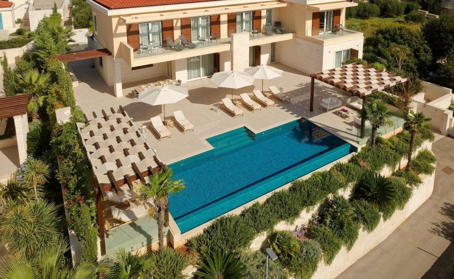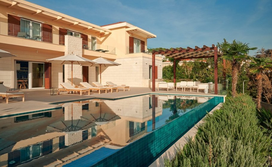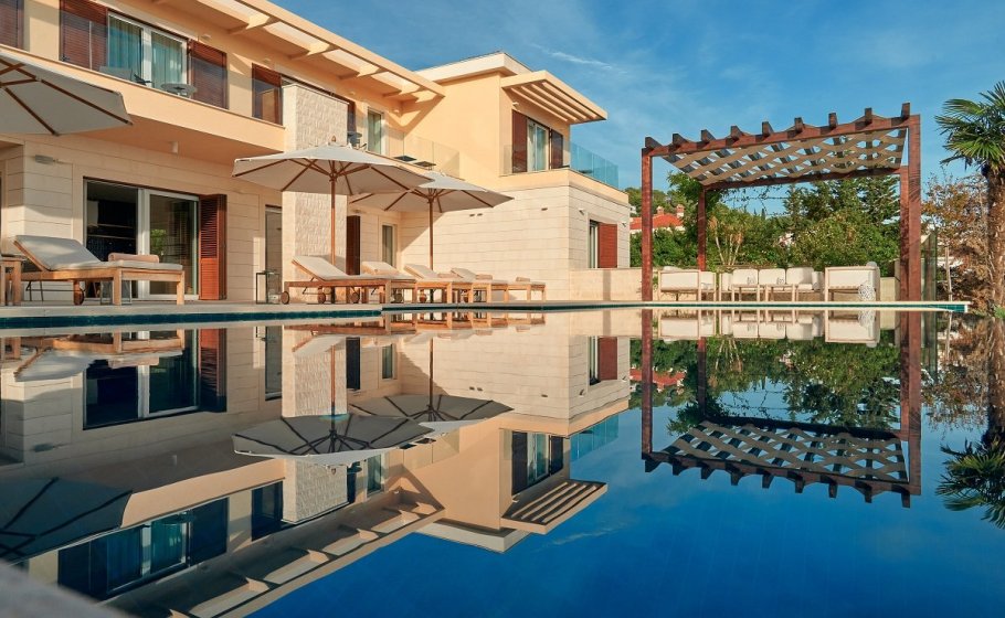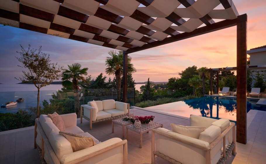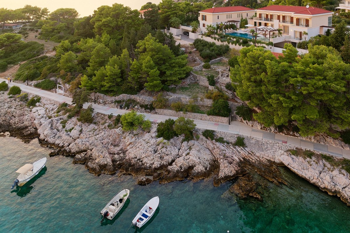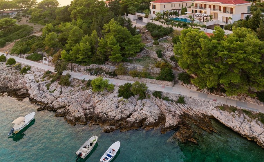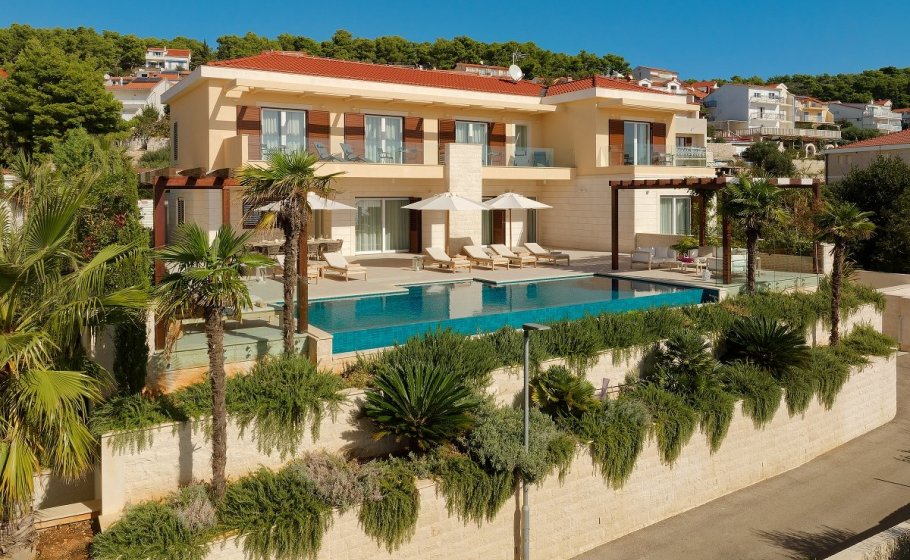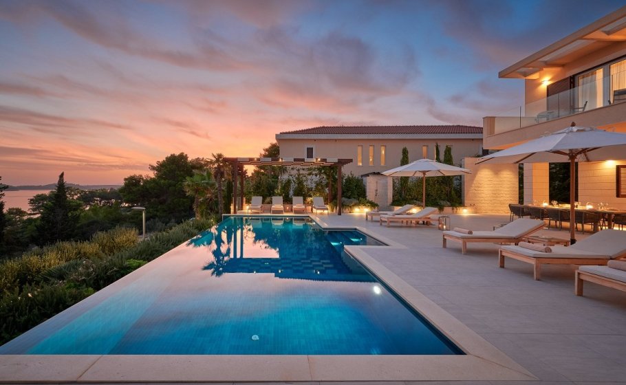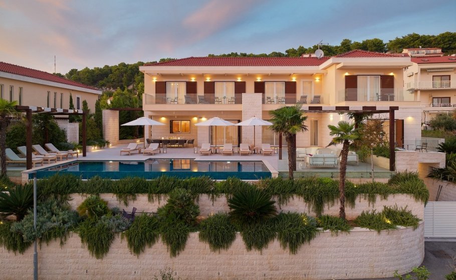 Hermes Blue is a luxurious contemporary design villa located in the town of Hvar. Perfectly situated in a peaceful area, approximately 20 meters from the sea and a 15-minute relaxing stroll from the historic Hvar town center. 547 square meters of total surface of the villa are surrounded by colorful Mediterranean greenery.